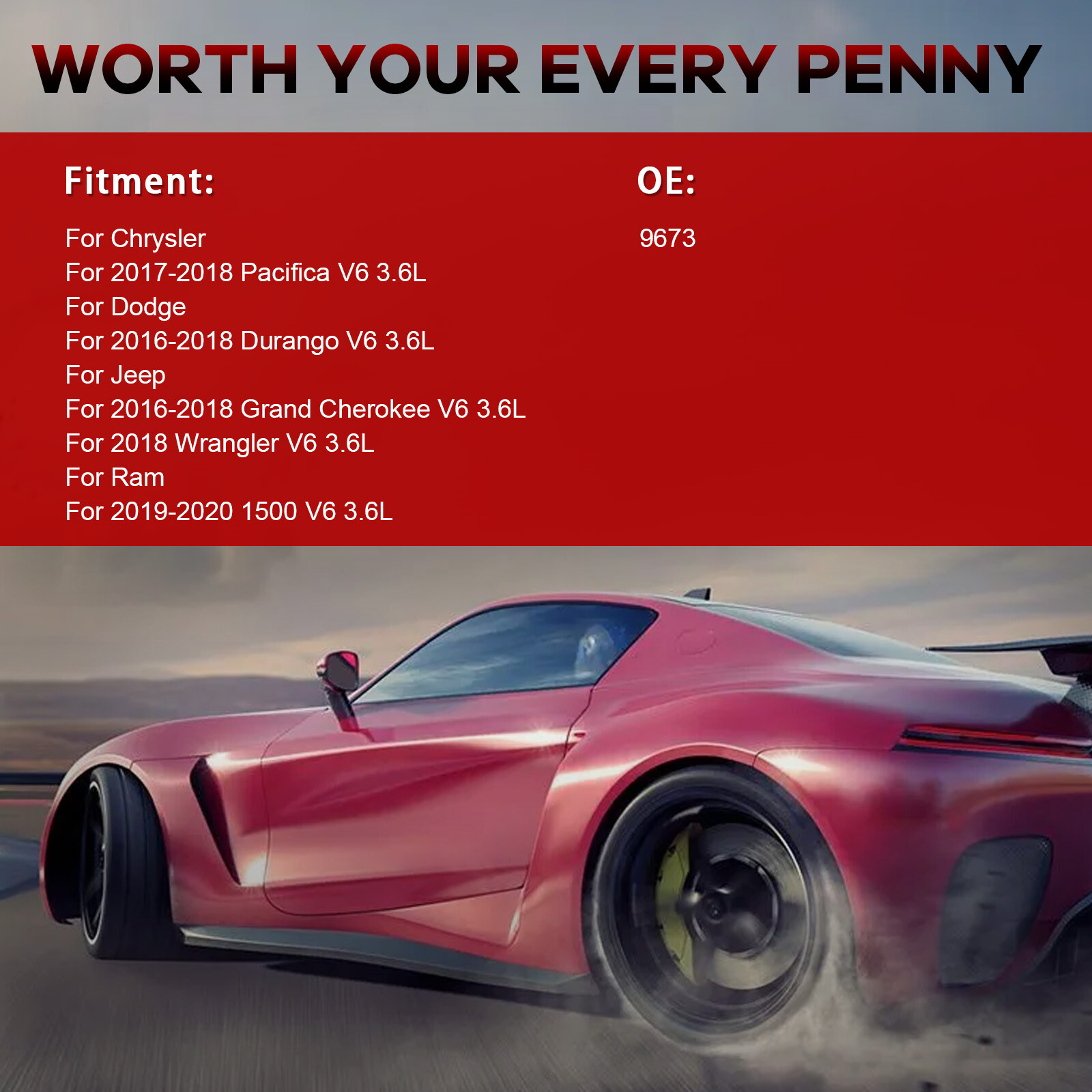 Welcome to the cmpafte_4 store. We are specialized in exporting auto parts and excavator construction machinery parts. Our products are uniquely endowed with very good quality, competitive price and good after-sales service. Please double check if it fits your car before purchase, if you are not sure you can contact us. If you encounter problems, please contact us first and we will help you solve it Specification Condition: Brand New Connector: 3Pins Thread Diameter:M12 Thread Length:26.5mm Feature: Built to strict quality control standards. Ready to use, Direct Replacement. 100% Compatible with OEM Parts, meets Original Equipment Manufacturer (OEM) Standards 100% pure copper windings in bobbins improve durability ,thermoplastic housing withstands heat stress for enhanced durability Silicone rubber boot withstands extreme heat to ensure superior insulation Spark Plugs are using High-Performance Iridium metal, Much better than Nickel and Platinum It's suggested that ignition coil and spark plug be replaced in a sychronized manner to lower the likelihood of common ignition system dysfunctions such as failure to start,engine vibration, misfiring, inadequate power, spark plug fouling and poor fuel economy Package include: 6pcs Ignition Coils + 6pcs Iridium Spark Plugs Interchange Part Number: UF807, 68223569AD, 68223569AB, 68223569AC Spark Plugs OE number:9673 Fitment: For Chrysler ·2017-2018 Pacifica V6 3.6L For Dodge ·2016-2018 Durango V6 3.6L For Jeep ·2016-2018 Grand Cherokee V6 3.6L ·2018 Wrangler V6 3.6L For Ram ·2019-2020 1500 V6 3.6L