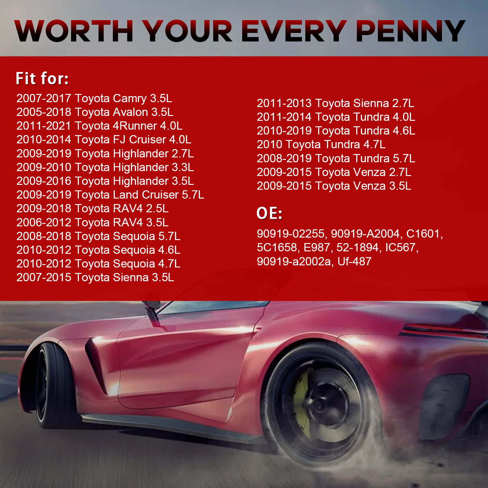 Welcome to the cmpafte_4 store. We are specialized in exporting auto parts and excavator construction machinery parts. Our products are uniquely endowed with very good quality, competitive price and good after-sales service. Please double check if it fits your car before purchase, if you are not sure you can contact us. If you encounter problems, please contact us first and we will help you solve it Specification Condition: Brand New Connector: 3 Pins Thread Diameter: M14 Thread Length:20.5MM Built to strict quality control standards. Ready to use, Direct Replacement. 100% Compatible with OEM Parts, meets Original Equipment Manufacturer (OEM) Standards 100% pure copper windings in bobbins improve durability ,thermoplastic housing withstands heat stress for enhanced durability Silicone rubber boot withstands extreme heat to ensure superior insulation Spark Plugs are using High-Performance Iridium metal, Much better than Nickel and Platinum It's suggested that ignition coil and spark plug be replaced in a sychronized manner to lower the likelihood of common ignition system dysfunctions such as failure to start,engine vibration, misfiring, inadequate power, spark plug fouling and poor fuel economy Package include: 6Pcs Ignition Coils + 6Pcs Spark Plugs Interchange Part Number: 5C1451, 5C1016, DQ50132A, UF400, UF-400, 1788359, GN10168, 5C1451, C1460, C1576, E420, 30520PDKA01, 30520PGKA01, 30520PVFA01, 30520PVKA01,4503, PK16TT Fitment: 2001-2003 Acura CL V6 3.2L 2002-2005 Acura El L4 1.7L 2001-2006 Acura MDX V6 3.5L 2007-2009 Acura MDX V6 3.7L 2005-2008 Acura RL V6 3.5L 2009-2011 Acura RL V6 3.7L 1999-2008 Acura TL V6 3.2L 2007-2008 Acura TL V6 3.5L 2000-2007 Honda Accord V6 3.0L 2001-2005 Honda Civic L4 1.7L 1999-2010 Honda Odyssey V6 3.5L 2003-2008 Honda Pilot V6 3.5L 2006-2008 Honda Ridgeline V6 3.5L 2004-2007 Saturn Vue V6 3.5L How to Change Ignition Coils and Spark Plugs? This product recommends professional installation. 1. Disconnect the old ignition coil and spark plugs 2. Disconnect your battery’s negative terminal 3. Locate the ignition coil and spark plugs to be replaced. 4. Release the clip on the plug running into the side of coil. 5. Use a wrench to unscrew the bolts holding the original coil in place 6. Extract original ignition coil and spark plugs from the engine bay 7. Swapping in the new ignition coil and spark plugs 8. Prior to installation, compare the new coil to the old one 9. Orient the new coil in the same direction 10. Insert the bolts to hold the coil in place 11. Activate the New ignition coil and spark plugs 12. Connect the plug into the side coil 13. Plug in ignition cables according to the order written on them. 14. Reconnect the battery 15. Start the vehicle to test the new ignition coil and spark plugs Note: 1. In preparation for the replacement, the vehicle should be turned off and cooled for a certain period of time before starting the replacement. 2. Pay attention to the cleanliness of the entire operation, must wipe the ignition coil around the dust and oil, if into the combustion chamber, will have serious adverse effects, try to wear gloves to operate.