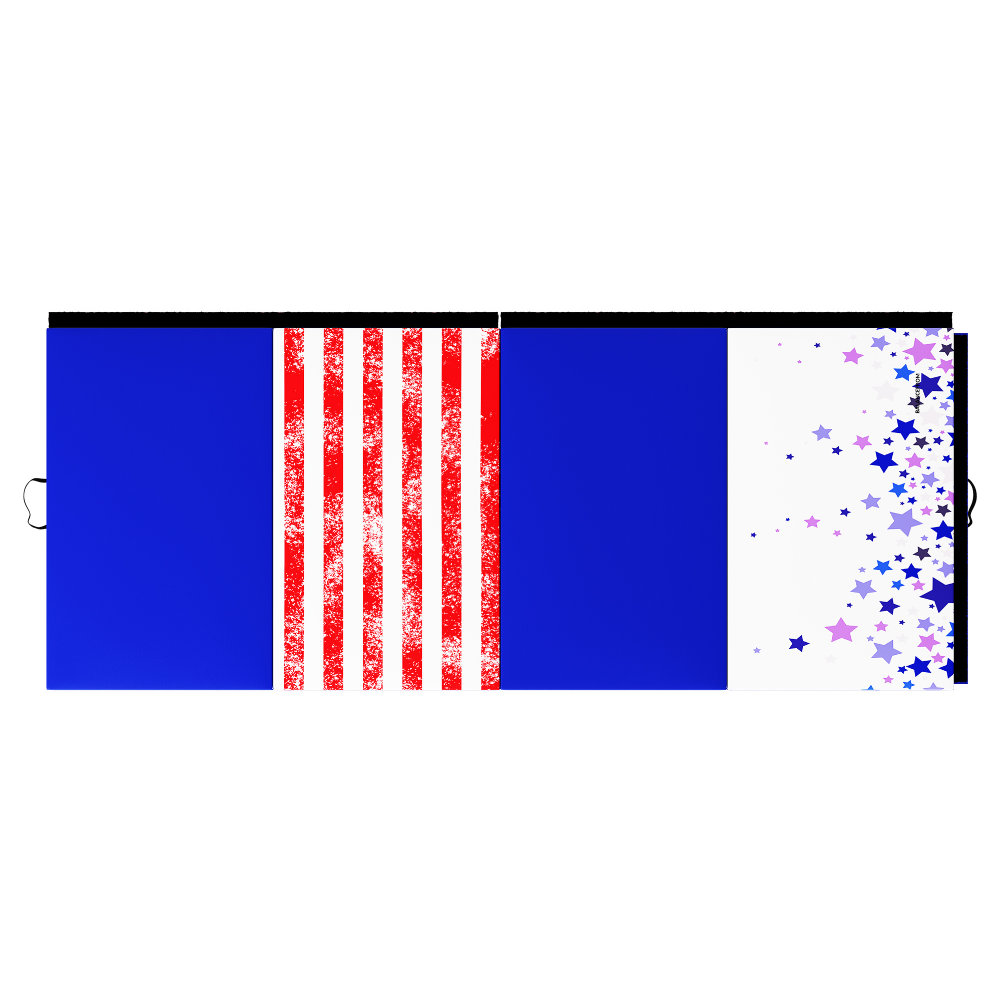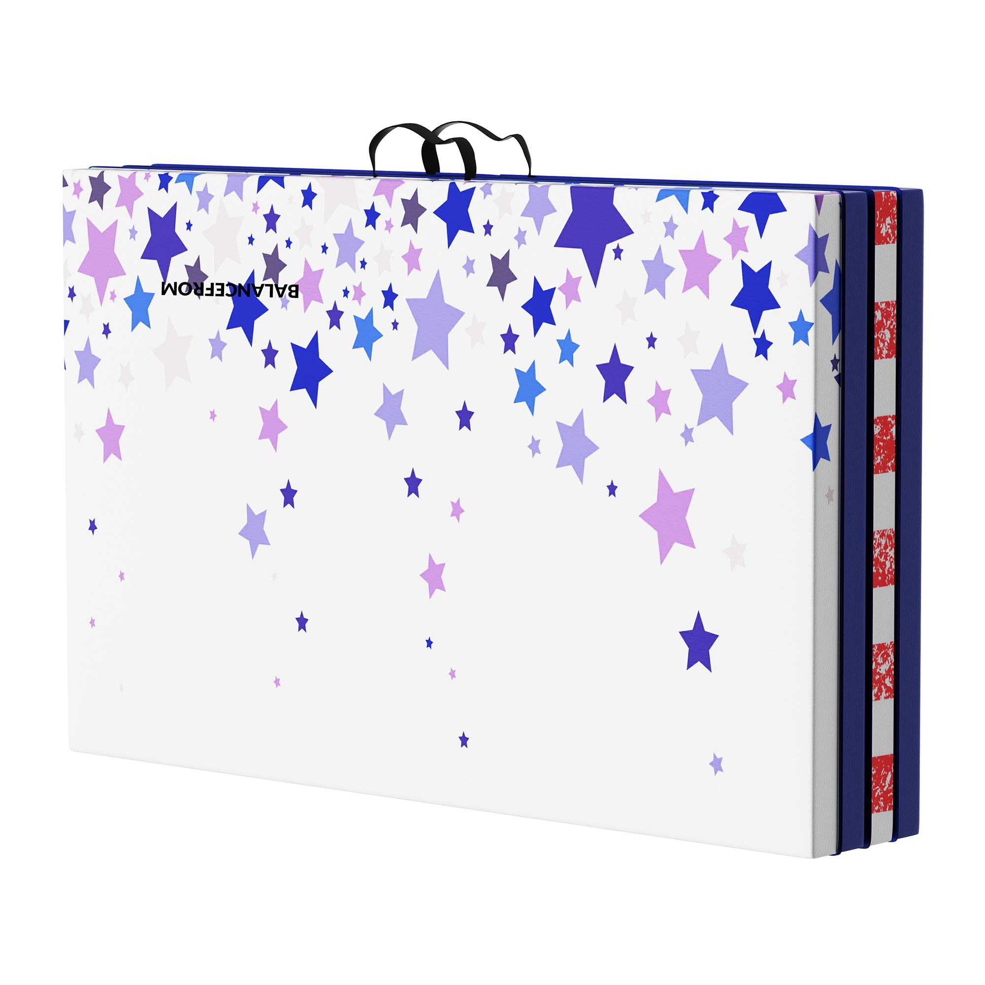 The gymnastics mat features a generous 10-foot length, 4-foot width, and 2-inch thickness of firm high-density EPE foam, tailored for yoga, aerobics, Pilates, and martial arts. Its lead-free vinyl surface withstands puncturing and can be washed with soap and water. Hook and loop fasteners on all sides facilitate easy mat connection, creating an expansive exercise area or tumbling track, and can be secured in a folded configuration. The foldable 4-panel design and built-in handles guarantee convenient storage and transport.
