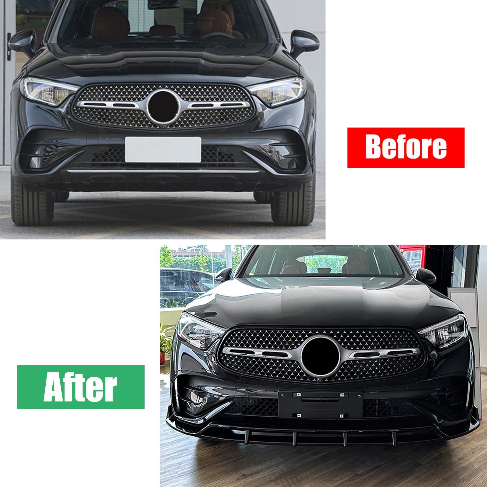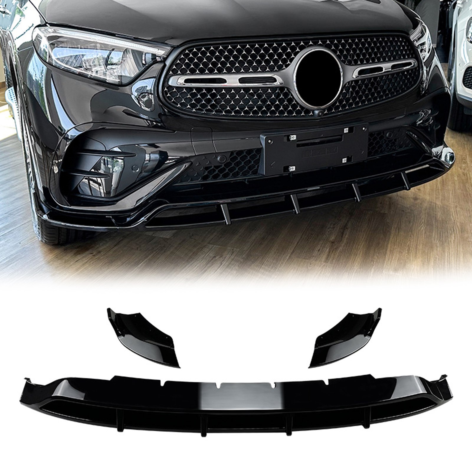 Front Bumper Spoiler Lip Black For Benz GLC Class X254 2023+ GLC260 GLC300 AMG