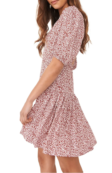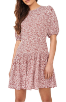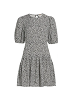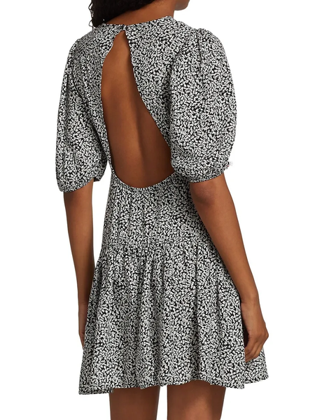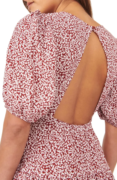 Sweeten the occasion in this flowery mini styled with an eye-catching back cutout and a flouncy ruffled skirt.