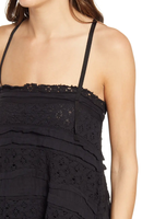 Sweet and stylish, this cotton slip dress from Free People features an effortless silhouette and pretty crochet lace details. Square neckline; Slip silhouette Pullover styling Adjustable straps Crochet lace paneling; ruffled hem Imported