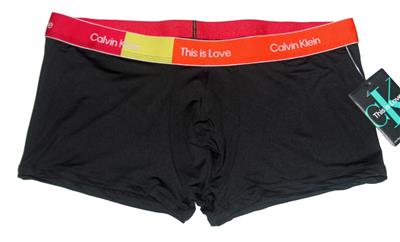 Calvin Klein Pride "This is Love" Underwear Trunks. Double layer pouch front, no open fly. Wide colorblock band. Super soft, 88% reprocessed polyester, 12% elastane. Men's sizes. NWT $28. Design from 2022.