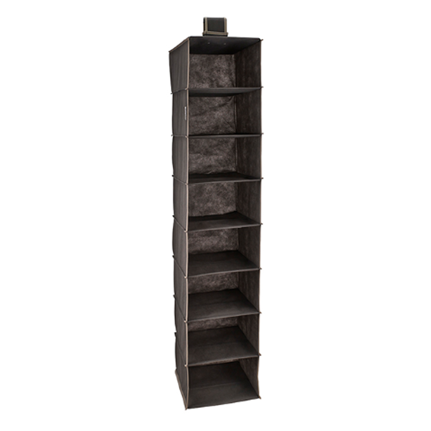 This bedroom hanging closet organizer is supported by a durable wire frame with a non-woven polypropylene fabric that's resistant to stains and easy to clean. 8 deep cubby shelves provide plentiful space for shoes, sweaters, scarves, accessories, and more. Each shelf has reinforced slats to boot stability, making it versatile for hardware, tool, and food storage.