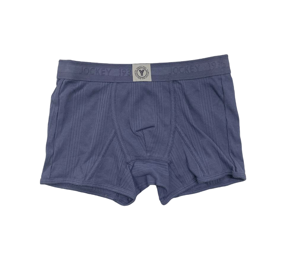 Unique irregular cotton rib with elastane, re-invented from the Jockey archives. Crafted with organically grown cotton. Embossed branded cotton blend waistband gives a heritage feel with a soft gentle texture. Self bind encased elastic on the leg line for a soft finish against the skin. Heritage branding celebrating the greatness of the Jockey brand history.