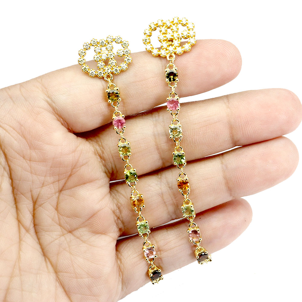 * STONE 3.5 MM. * CZ 1.5 MM. * FACE EARRINGS 150.0 X 16.0 MM.