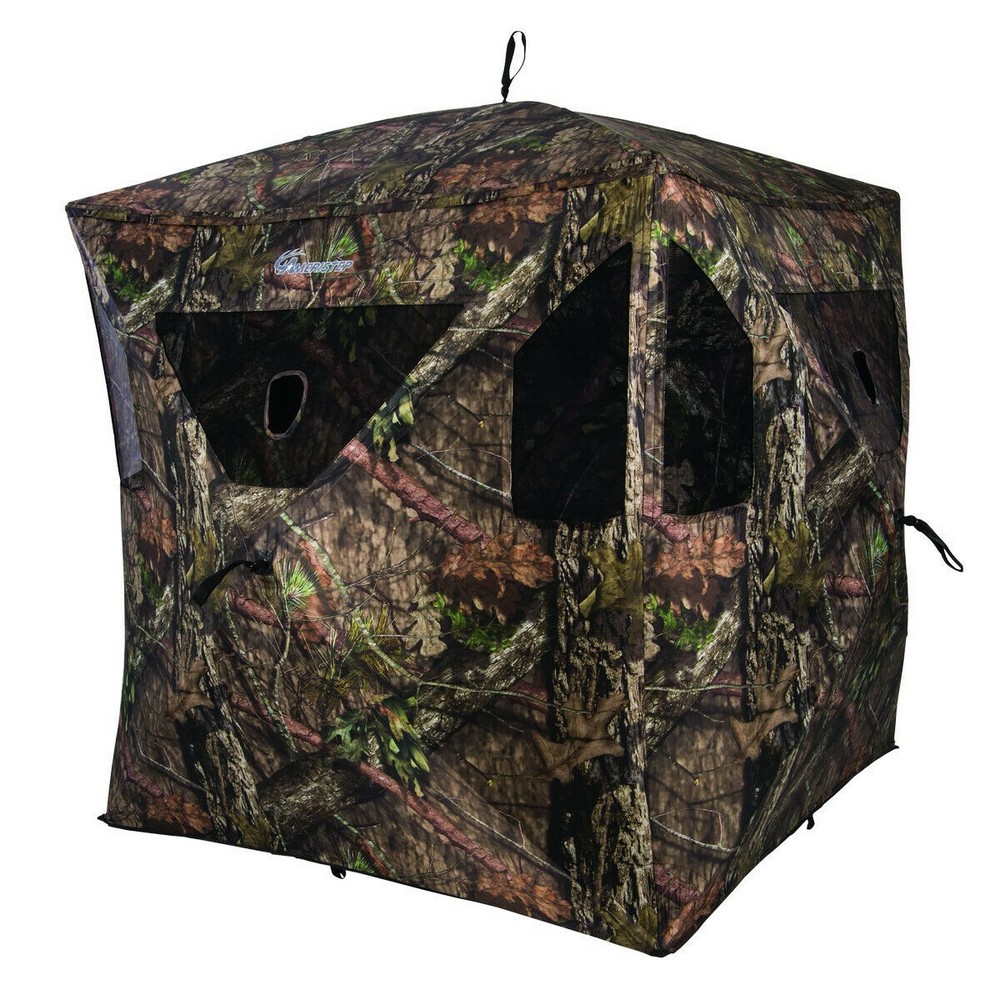 Ameristep Brickhouse Blind Mossy Oak Break Up Country The Brickhouse is an ideal blind for multiple firearm hunters who need extra elbow room and solid shot variety. Versatile window openings feature both shoot-through mesh and gun ports to handle whatever angle or location your shot requires. The Brickhouse is as sturdy and dependable as its name suggests with a rugged Spider Hub frame that sets up easily and Durashell Plus fabric that provides durable protection with a matte finish. Paired with brush loops for adding natural foliage, the Brickhouse manages to stand its ground while remaining discreet. FEATURES Shoot-through mesh windows with gun ports Brush loops for adding natural foliage Durashell Plus fabric shell with matte finish Rugged Spider Hub frame for easy setup and takedown ShadowGuard coating eliminates shadows and silhouettes