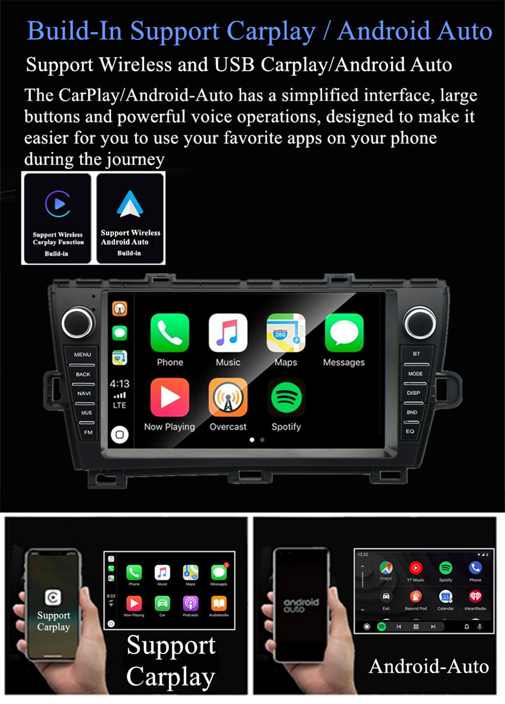 | Support Carplay/Android Auto | -Build-In Support WIFI Wireless & USB Wired Carplay And Android Auto. |