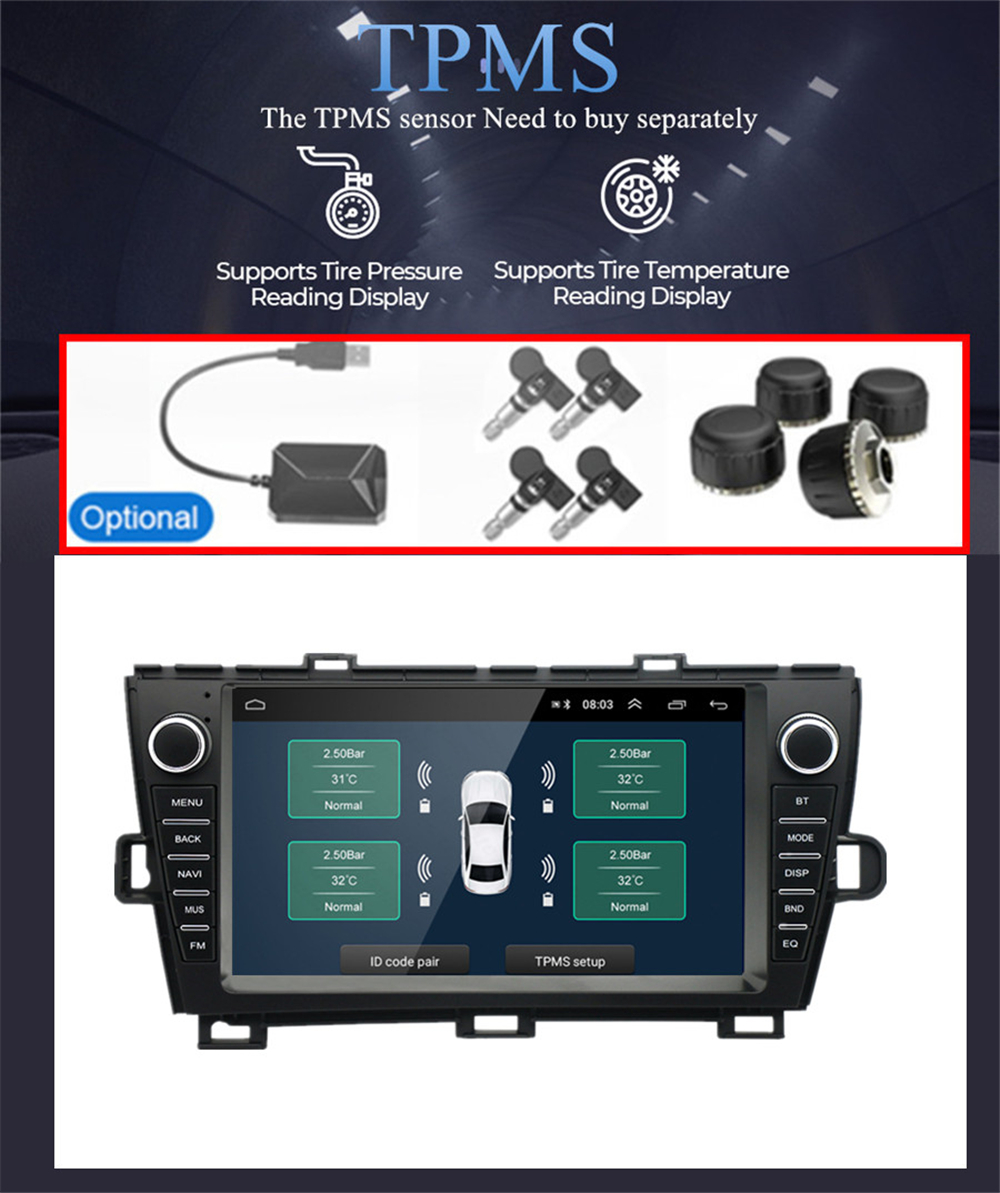 Additional | - Textbook: Could change font, font color, background color, bookmark, reading E-book while listening music - Photo Viewer: Support JPS, BMP, PNG, GIF etc. format. play by revolve, Powerpoint Support 4096*4096 Pixels - Wallpapers: 5 live wallpapers, 17 standard wallpapers, support DIY wallpaper from Gallery - APK Installer: Support Android Package installer - Support Torque Pro(OBD2 &Car): Yes, you can connect a Bluetooth/WIFI OBD2 Scanner Tool(Bluetooth version ≥ 4.2) to use this function - Support Mirror Link function: Yes, support WIFI screen mirroring from iPhone and android smartphone - Support TPMS: YES (Not Included) -Support Steering Wheel Control;Yes |