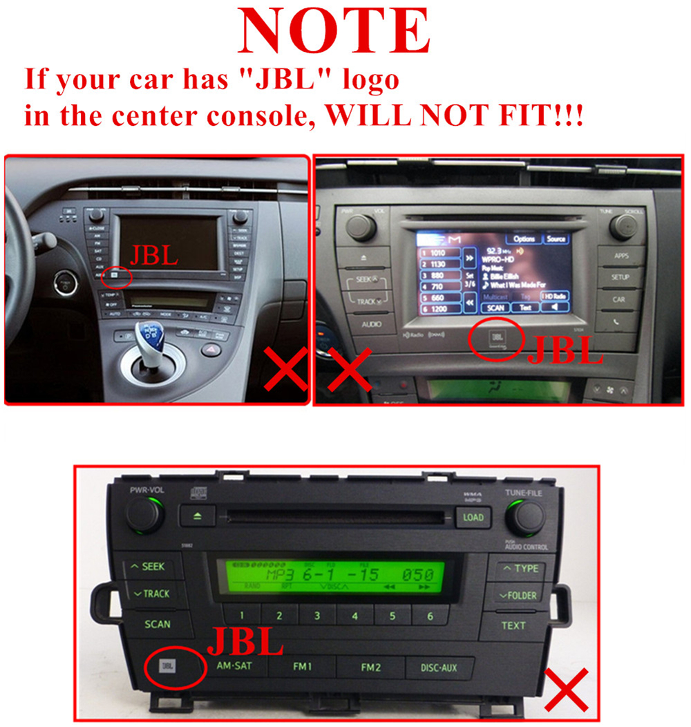 | NOTE | If your car has "JBL" logo in the center console(As picture show), WILL NOT FIT!!! |