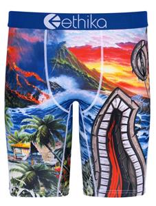 ETHIKA The Staple BOMBER ISLAND Long Boxer Briefs. Flatlock stitching. No open fly. Fabric is 90% polyester, 10% spandex. Men's sizes.