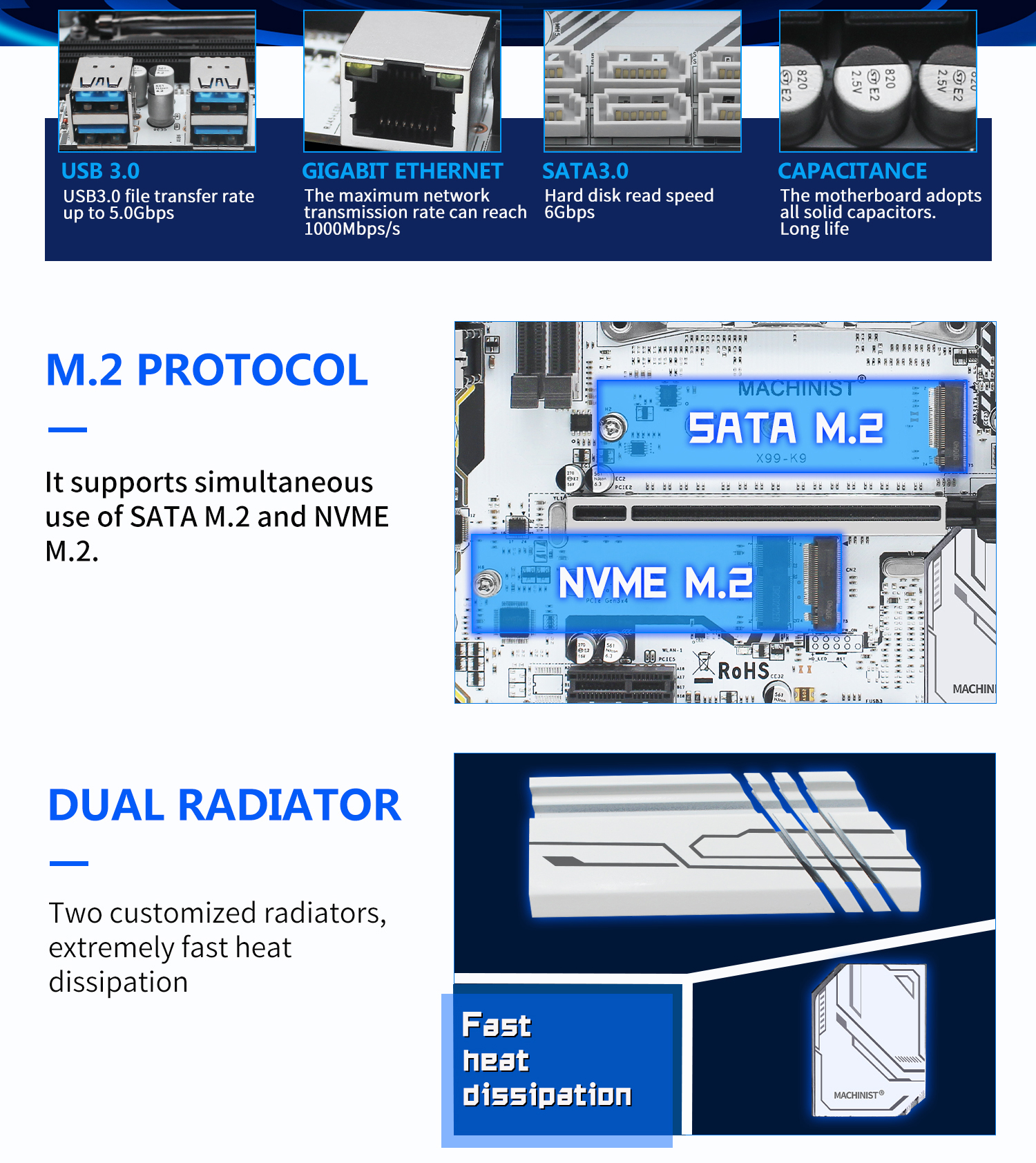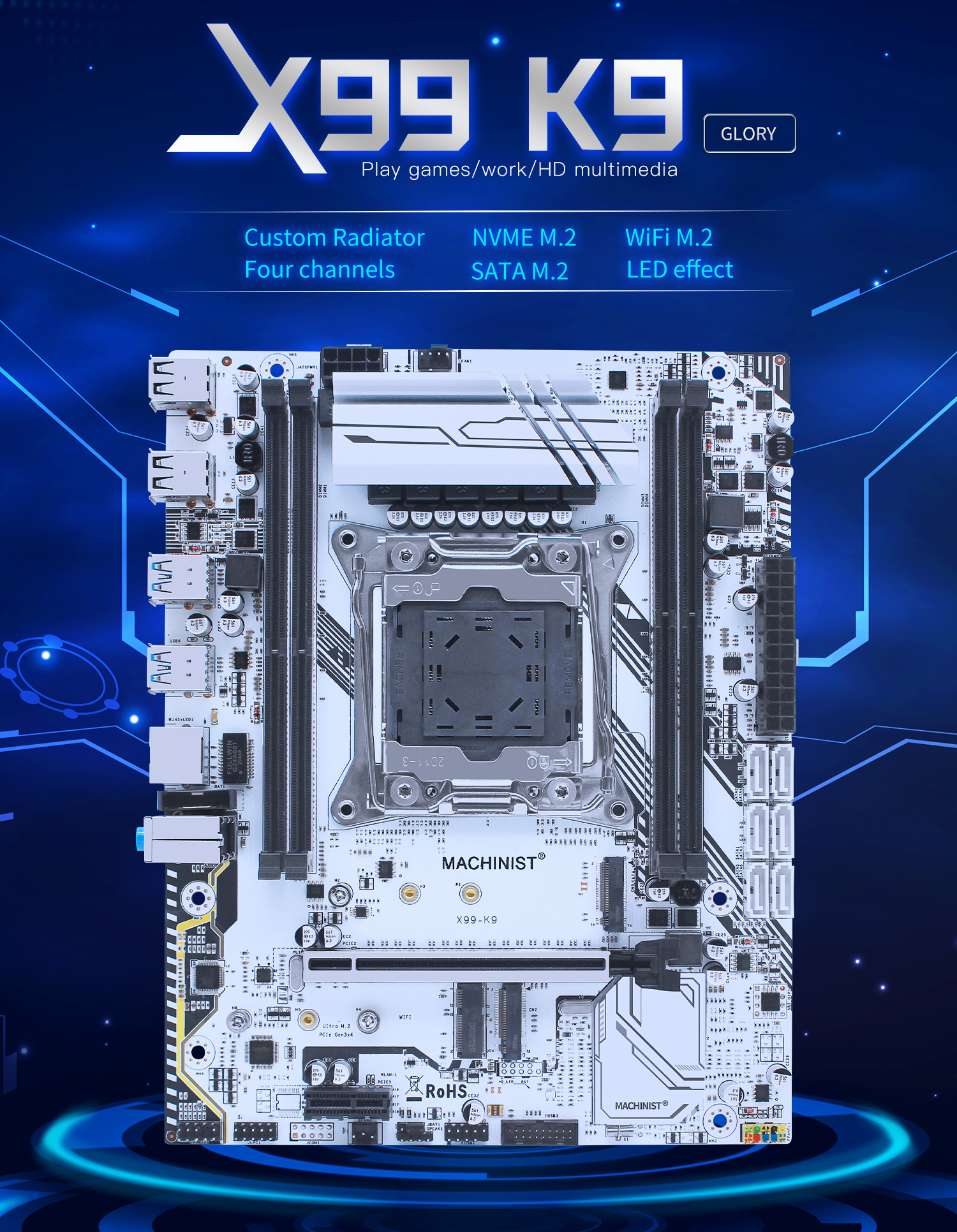 Item Feature: 100% brand new and high quality! support SATA M.2 / M.2 NVME/ WIFI M.2. support DDR4 REG ECC server memory/DDR4 Desktop memory. with M.2 NGFF WIFI slot. High compatibility for a higher experience. All solid capacitors, fine workmanship, and professional stability. Item Specification: Chipset: X99 Model: MACHINIST Condition: Full new CPU socket: LGA 2011-3 Structure: M-ATX CPU supported: Intel series with LGA 2011-3 socket(Support Intel Core i7 or xeon e5 v3&v4 series ) Memory socket: 4*DDR4 Max memory supported: 4*16G DDR4 Memory type supported: 2133/2400/2666(Note: DDR4 desktop memory is required when installing the I7 processor; server memory and desktop memory cannot be used at the same time;) Integrated video card: NO Motherboard dimension: 23.5cm*18.5cm Motherboard weight(including package): 0.9kg or so Application: Desktop, Server, Workstation, Mining Usage Scenario: Enthusiast & Overclocking, Gaming, Audio & Video, Household, Office, Design, Video Production, Server, Others