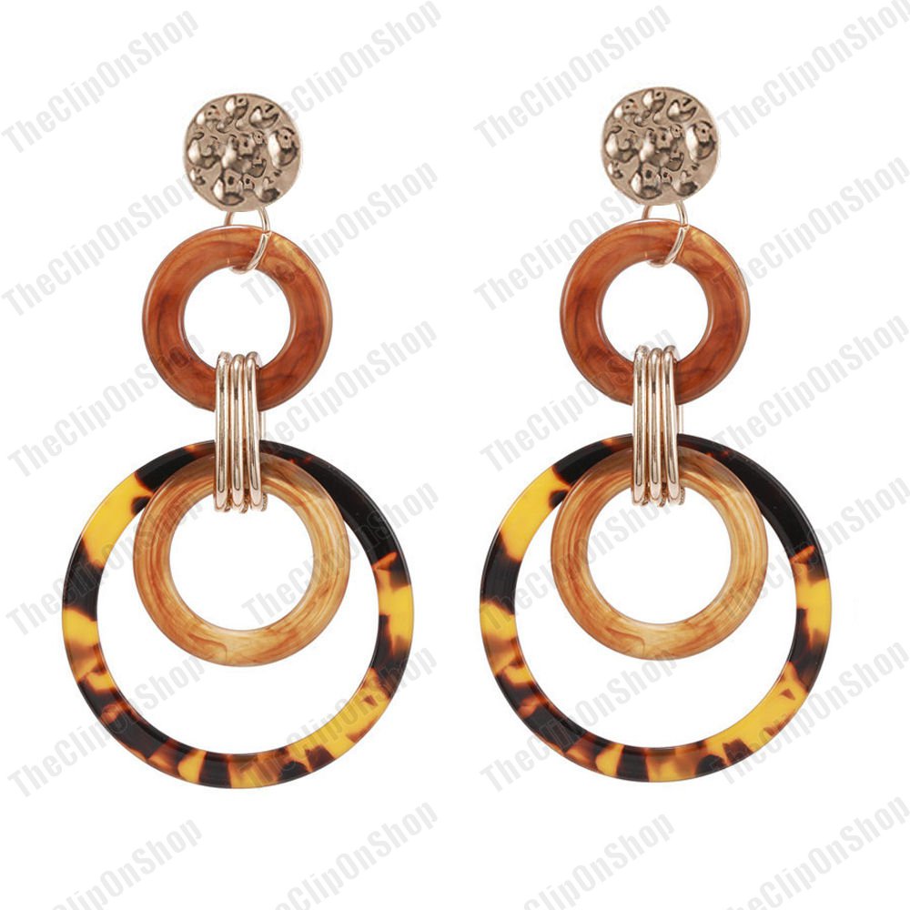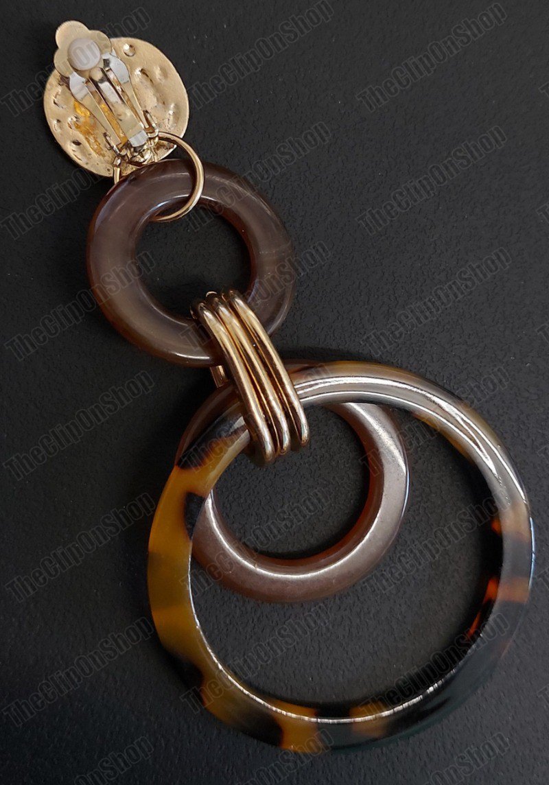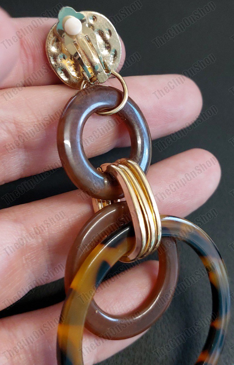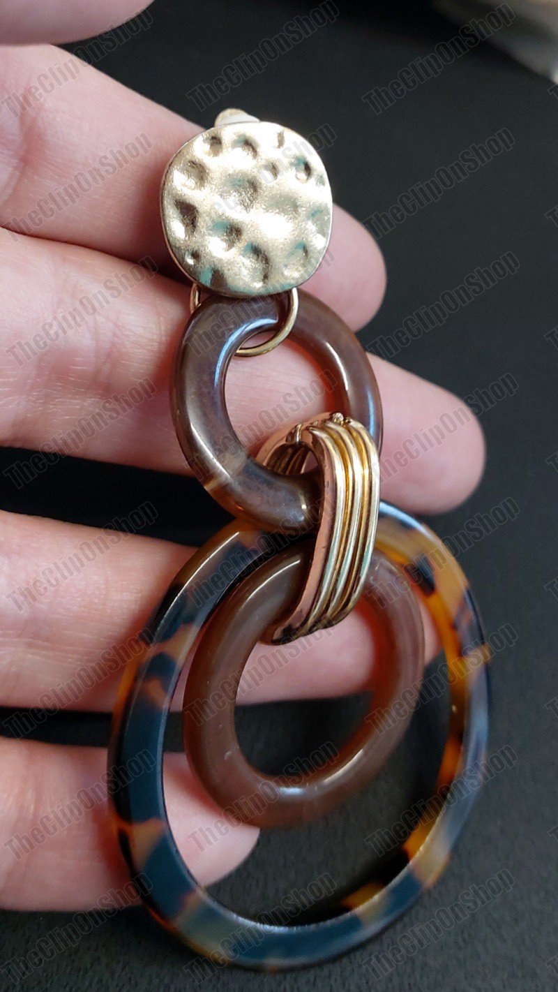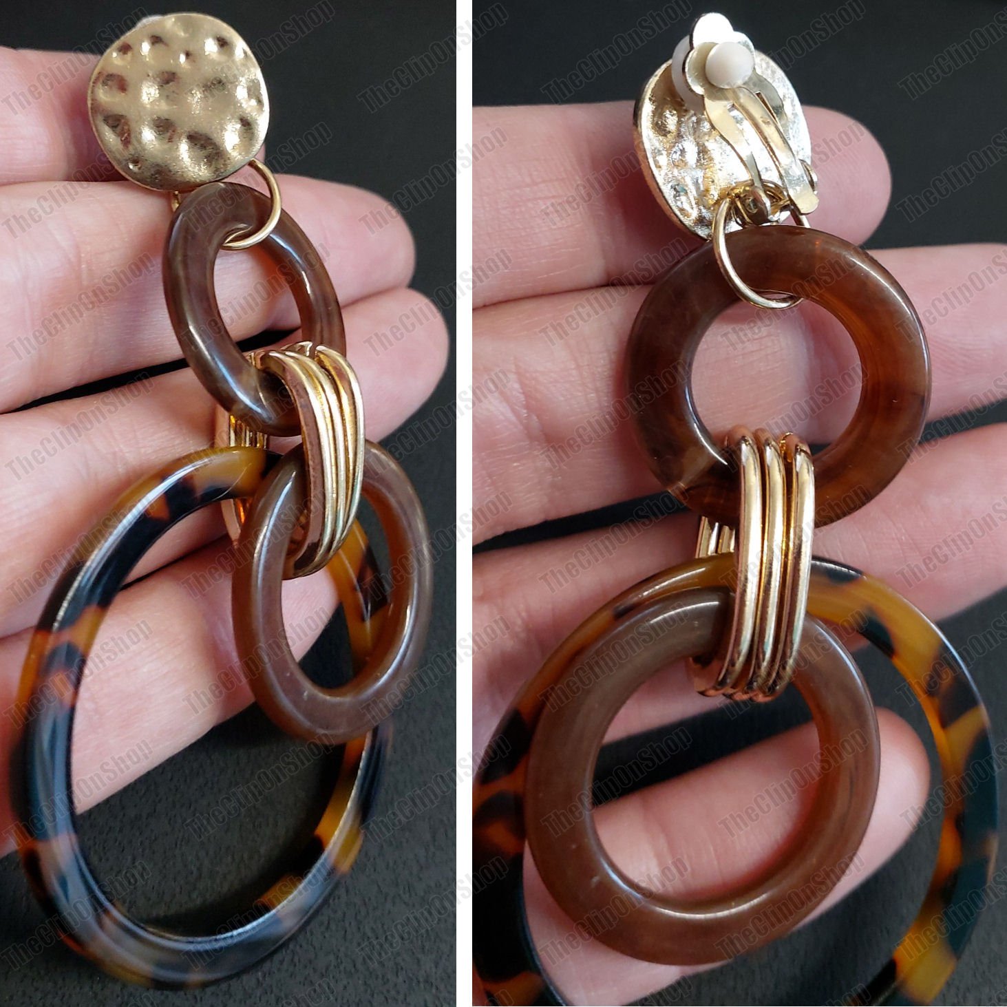 - Retro vintage style earrings with gold tone hammered metal tops, gold tone oval links and faux tortoiseshell resin hoops.