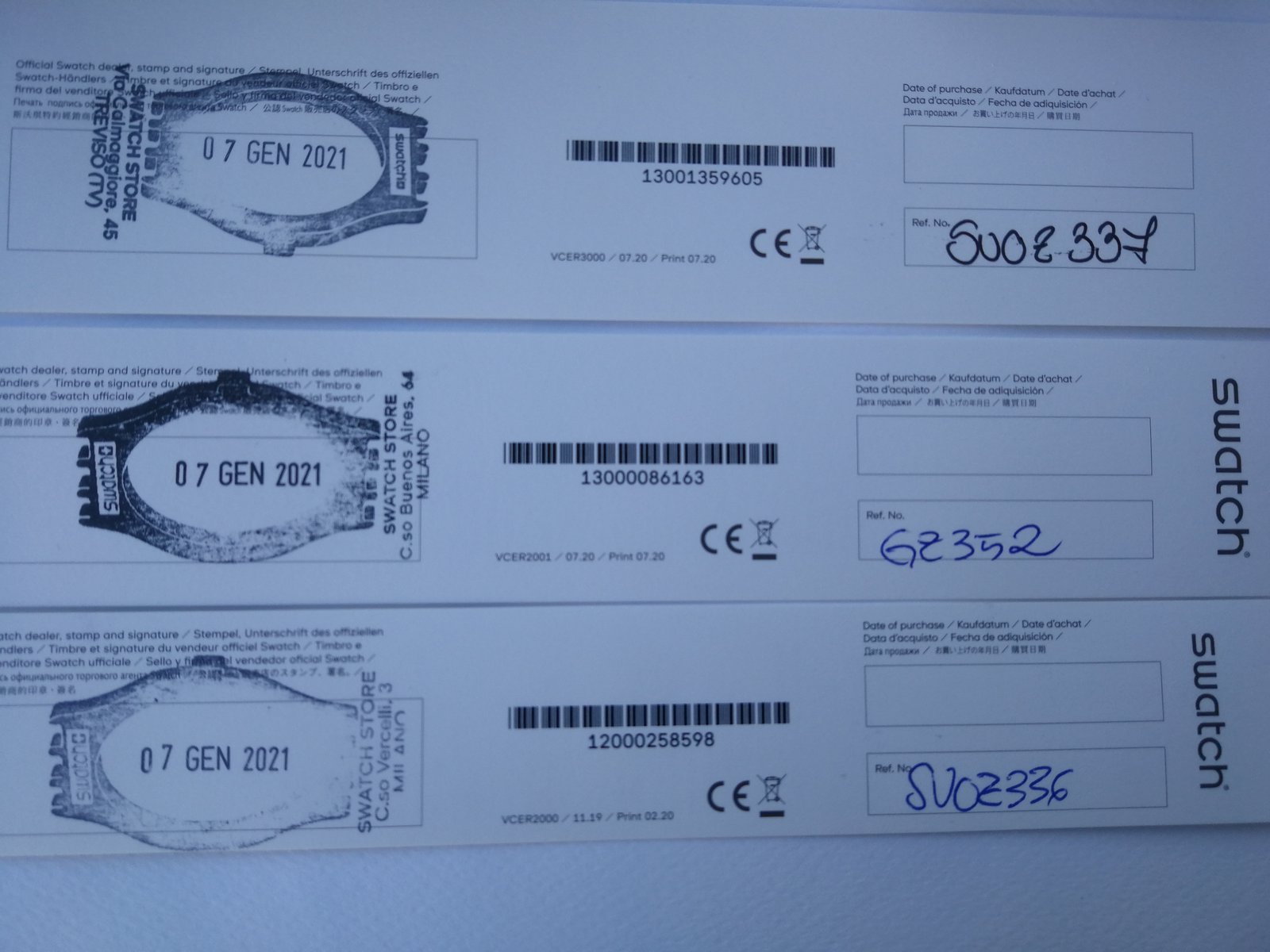 Swatch warranty certificate.