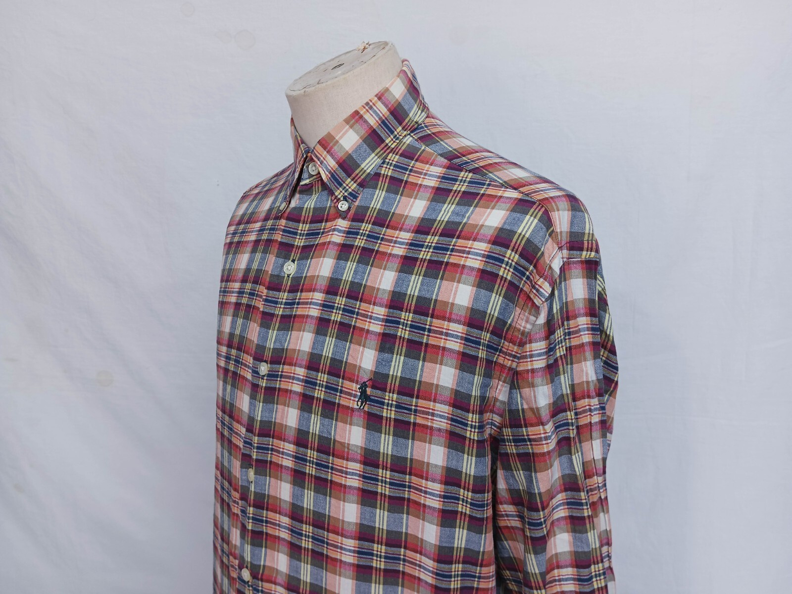 Awesome vintage 90's Polo Ralph Lauren plaid men's casual shirt authenticity guaranteed. Check out awesome vintage shirt long sleeves with buttons front. The shirt has button-down collar, embroidered with pony logo on left chest, 7 buttons closure on front. The color is multicolor with plaid pattern. Fabric is 100% cotton madras. The shirt is pre-owned in good vintage condition, collar is a little bit worn out. Please see the photos. It has been laundered clean and fresh ready to wear. Don't miss out cool and awesome vintage western shirt.