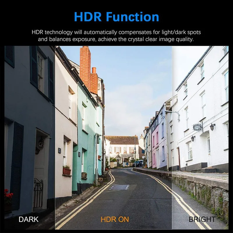 Super Night Vision, Sony IMX323 image sensor 1/2.9 inch light-sensitive components, 4 IR lights, f/1.8 aperture and 6-glass lens, can capture clear videos and photos even in low-light night conditions.