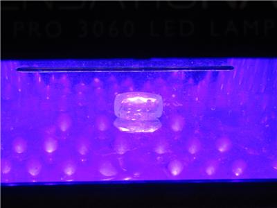 Color: Bluish Violet and fades to a lighter color in daylight via the Phenomena of tenebrescence, where light causes a fading of color to nearly colorless and in the absence of light the stones color becomes darker in absolute dark. This is a repeatable process and in some specimines can take days. Under Short Wave UV Light only the stone floresces to light Orangish Pink