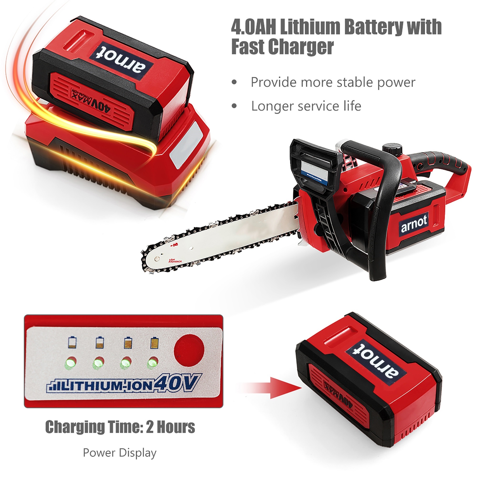 4.0Ah lithium-ion battery and fast charger to ensure long-time work