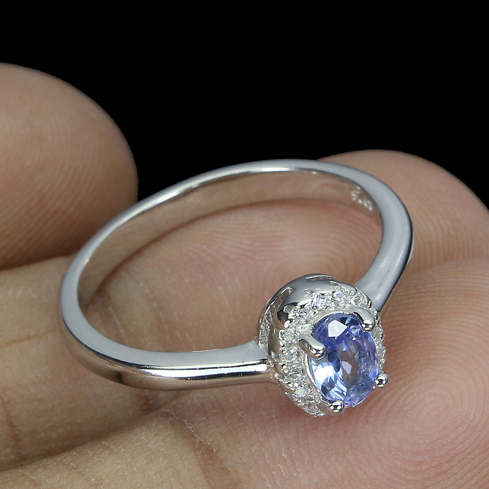Unheated Oval Blue Tanzanite 6x4mm Simulated Cz 925 Sterling Silver Ring 8