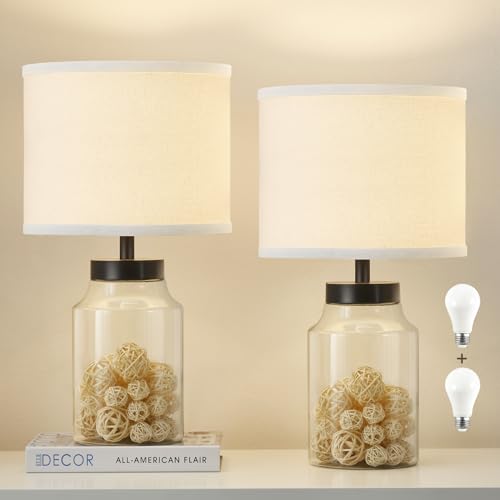 💕【Fillable Lamps with Novelty Design】:The most attractive of fillable nightstand lamps set of 2 is the glass body, which can be filled with seashells, ornaments or dry flower. You can create your unique styles to match different room decor with this design. The options are endless depend on your imagination.Widely used n the living room, bedroom, guest bedroom, office or anywhere.ATTENTION: ORNAMENTS(NOT INCLUDE)