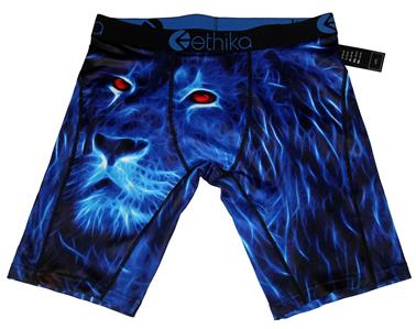 ETHIKA The Staple MUFASA Red Eyed Lion Long Boxer Briefs. Flatlock stitching. No open fly. Fabric is 90% polyester, 10% spandex. Men's sizes.