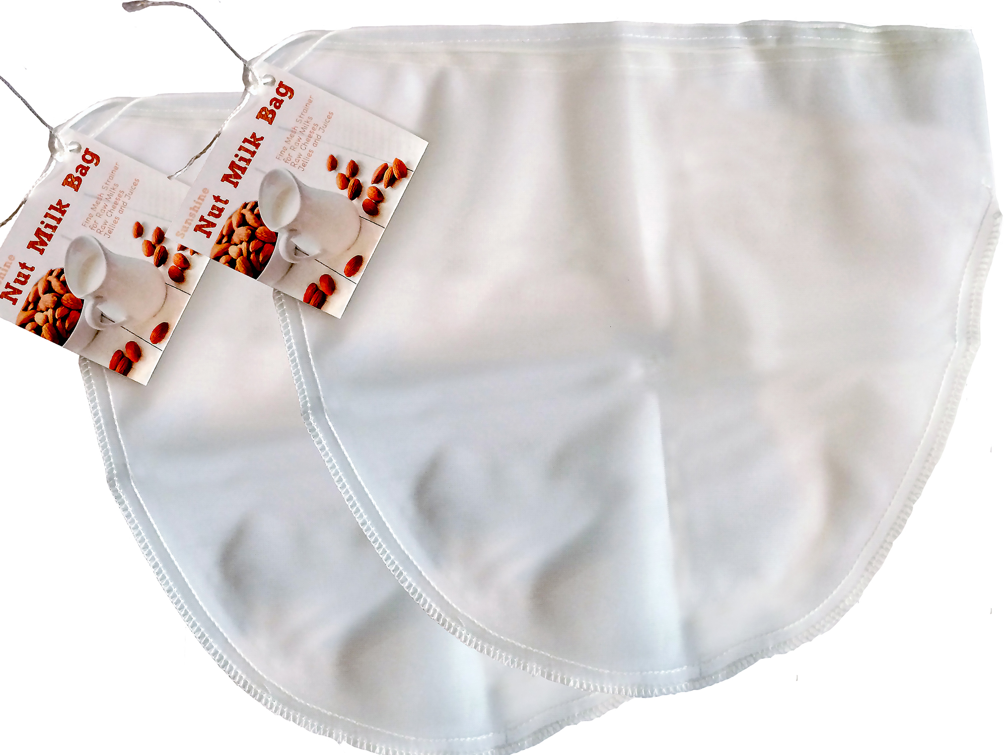 2 PACK! Save $ Karma Kitchen Fine Nylon Mesh Nut Milk Bags - Heavy Duty Extra Large 1 Gallon Size - 14" wide x 12" high GREAT FOR MAKING Raw Milks from Nuts and Seeds - Step by Step Instructions Included for making Nut Milk ! MULTIPLE USES- sprouting! Canning! Juicing! Fermenting! - Durable Duty Drawstring to cinch closed and hand while draining and straining STRAIN Fresh Juices for extra pulp free goodness! - MADE IN USA - reinforced double stitching for durability and strength RE-USABLE, Washable, Nylon won't harbor bacteria, washes clean for many many uses! 2 pack! 2qty of Karma Kitchen Durable Fine Mesh Nylon Nut Milk Bags. Stock up and save Great for many uses around the healthy kitchen: SPROUTING CANNING JUICING FERMENTING STRAINING nut milks from Raw Nuts and Seeds- Almond,Cashews, Sunflower mylk and more. Stop paying for processed packaged milks that have been pasteurized-make your own at home-save $ and ensure it is 100% raw and healthy. Made in the USA from high quality grade Nylon materials- easy to wash clean every time. Extra Large 1 Gallon Size!-14" wide x 12" high Also use this great bag for straining fresh fruit and vegetable juices to get all the pulp out- especially with masticating juicers Perfect for sprouting seeds and nuts-canning, making fresh jellies and jams, and more Nut Milk recipe and step by step instructions included!! Better than cheesecloth! Much Finer mesh, filters out much more pulp Reduce your waste footprint by making your own milk- buy nuts and seeds in bulk and filter your own water and you are ready to go- no more preservatives or additives needed! No more empty cartons and bottles to throw away from buying packaged soy or almond milk sprout your own seeds and legumes-save $ you can grow your own sprouts for a fraction of the price you pay at the store. Durable drawstring can be used for cinching the bag closed and hanging while draining. Reusable & Washable- washes clean every time. Nylon construction won't harbor bacteria. Made to be used over and over again. Holds up to rigorous squeezing. Reinforced double stitching for strength and durability. We use these for so many different things, even as "breathable" tops to our fermenting jars such as homemade pickles and Kombucha.You will easily find multiple uses are the kitchen