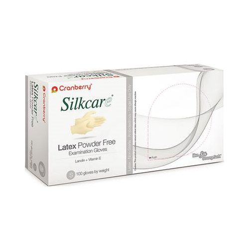 Latex Gloves: Small, Powder-Free 100/Bx. Non-Sterile, Micro-Web Textured Grip, Inner coating of USP Grade Lanolin and Vitamin E, Beaded Cuff, Ambidextrous.