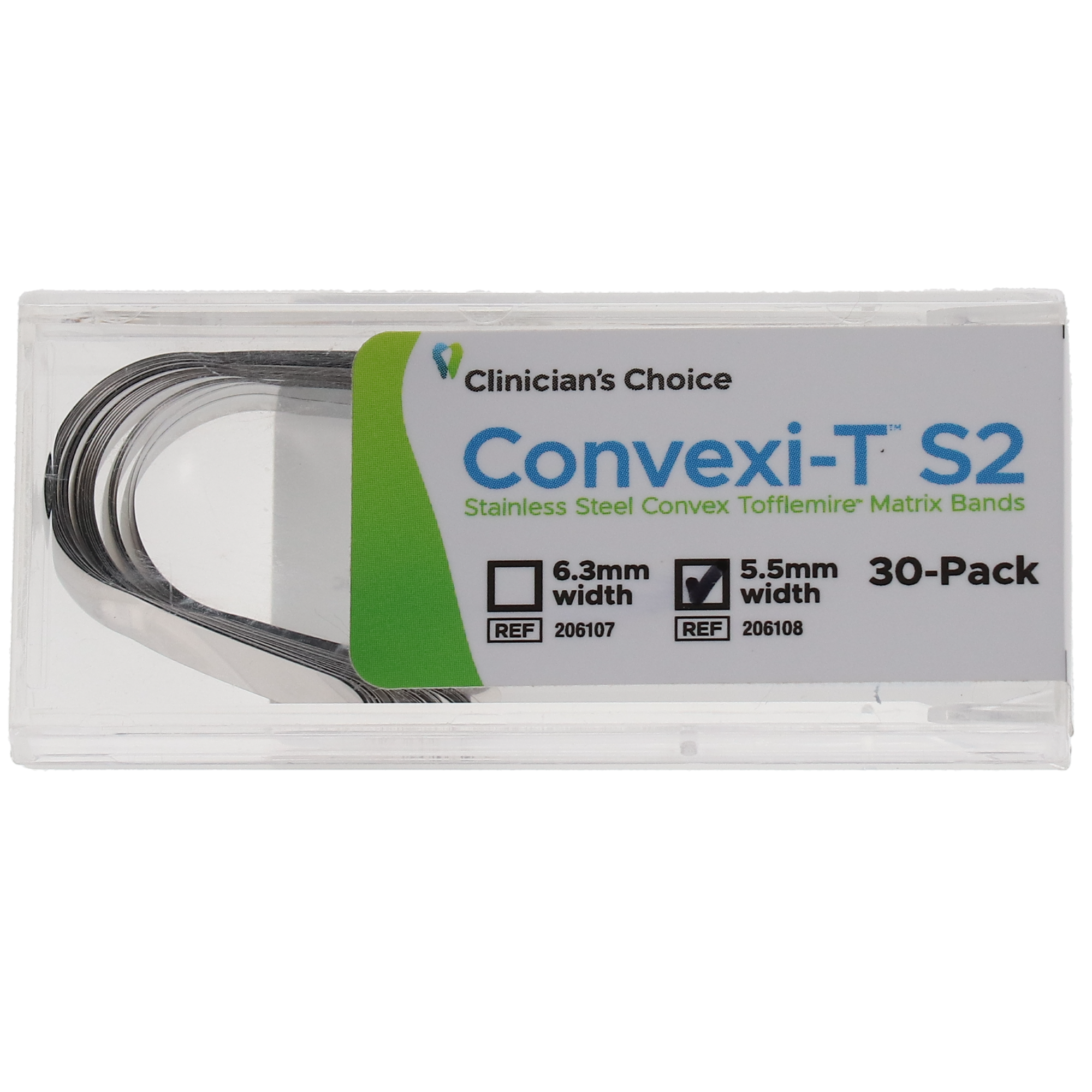 Convexi-T Convex Tofflemire Matrix Bands deliver detailed restorations of interproximal forms and contacts to achieve a natural aesthetic. Their pre-contoured molds of the lingual and gingival areas perfectly fasten into narrow sections to seamlessly follow the original contours of teeth. Ensure accurate anatomical adaptation with the bands' flexible and thin design that allows customized adjustments. 0.04 mm thin, 30-pack