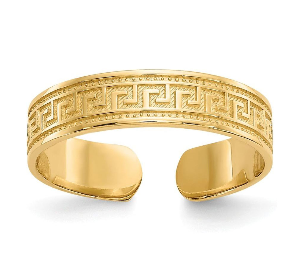 3D Adjustable Greek Key Band Toe Ring Solid Real 10K Yellow Gold