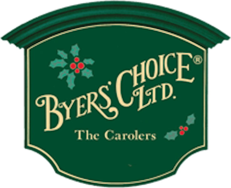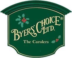 Since 1986, Byers' Choice Caroler Figurines have had a green felt ring and dated gold seal on the bottom of each base. Each figurine is also signed by a Byers' Choice artisan.