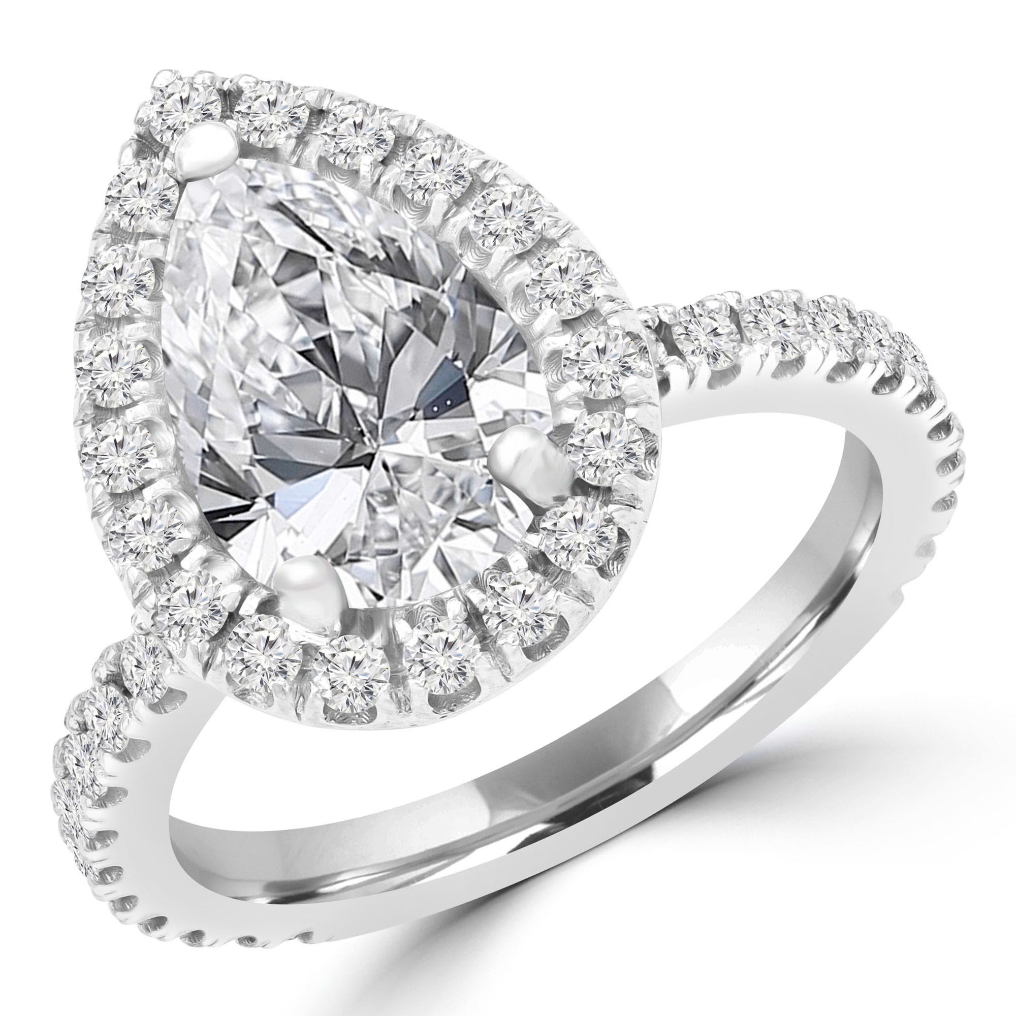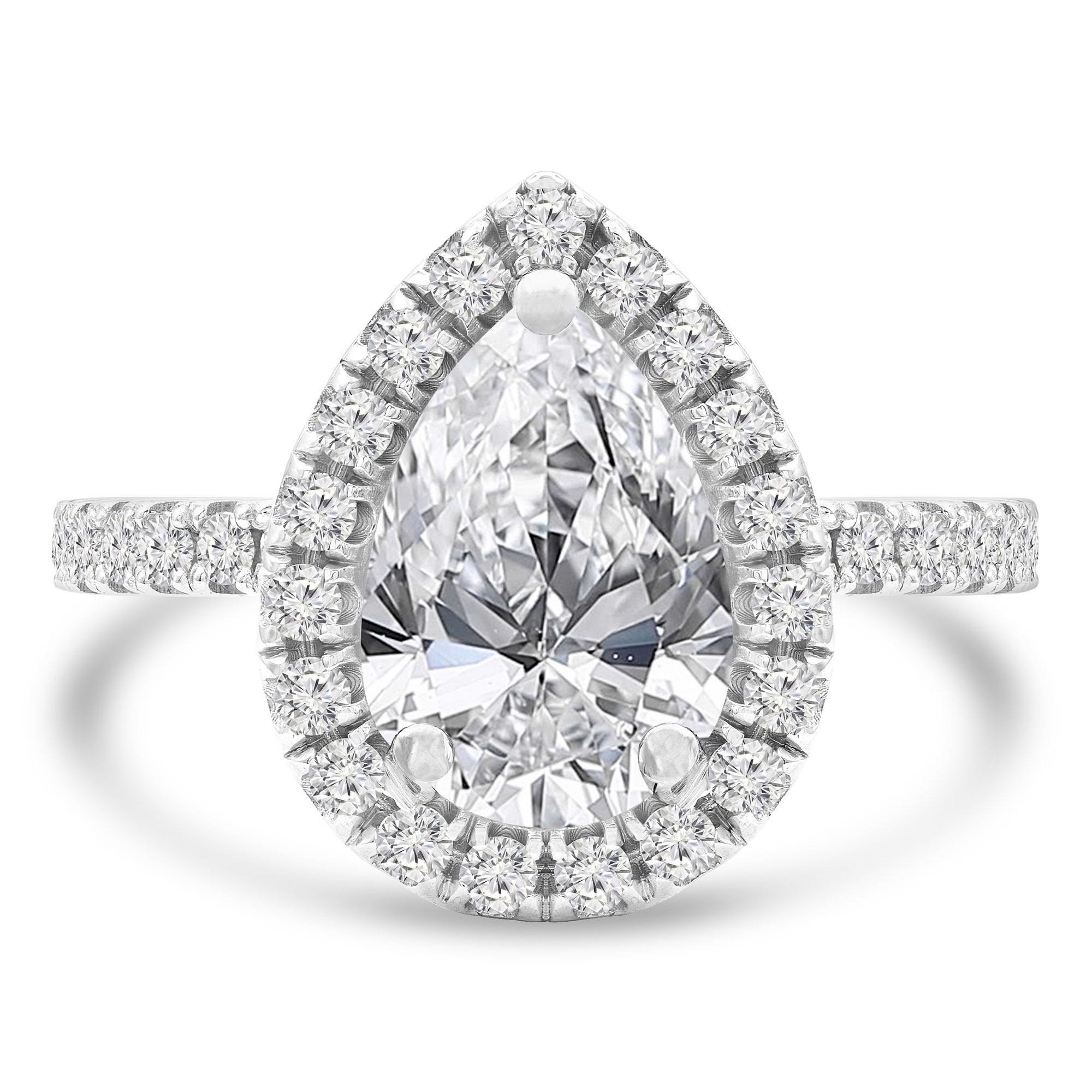 Timeless yet glamorous, this Pear Halo Engagement Ring is truly breathtaking. Elevate the glimmer of your ring with an embellishment of precisely cut diamonds. Without a doubt, this refined and radiant ring is a testament to exquisite taste.