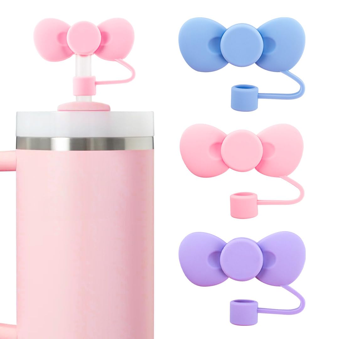 Straw Cover Cap for Stanley Cup, 3Pcs Cute Bow Straw Toppers Accessories