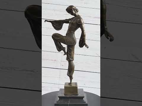 Crafted using the esteemed technique of lost-wax casting, this sculpture upholds the tradition of ancient artistry. To preserve its beauty, a brown patina finish has been skillfully applied. The sculpture is gracefully displayed upon a sleek black marble base, further enhancing its elegance and visual impact. The presence of the artist Chiparus's signature adds a touch of quality and celebrates the sculptor's talent and legacy. This sculpture encapsulates the allure and mystique of Egyptian belly dance, captivating viewers with its timeless beauty.