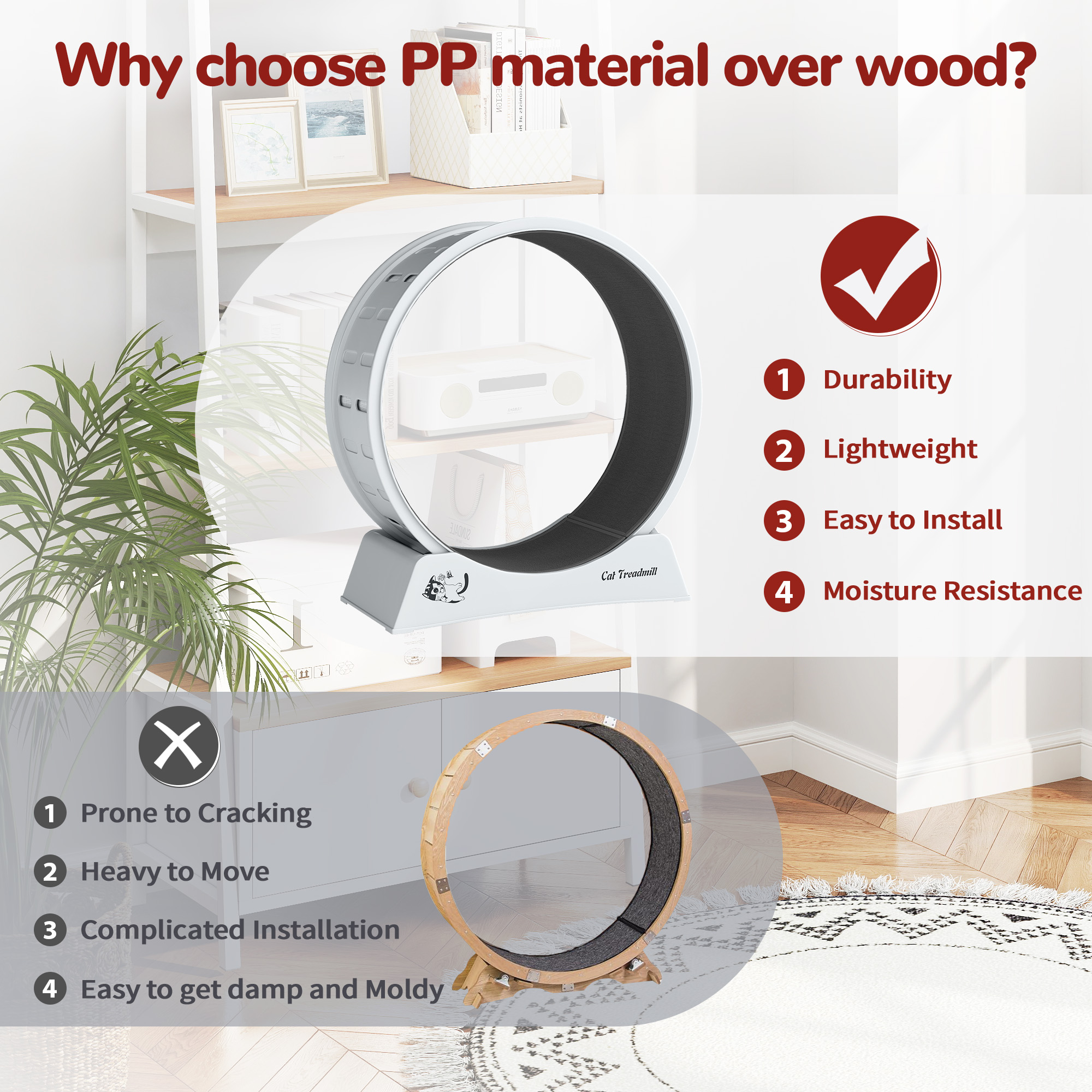 【Cats Benefit from Treadmill】: Designed to keep your indoor feline active and away from obesity and disease risk, this cat running wheel is a great pet supply to finish the exercise routine while integrating easily into your home.