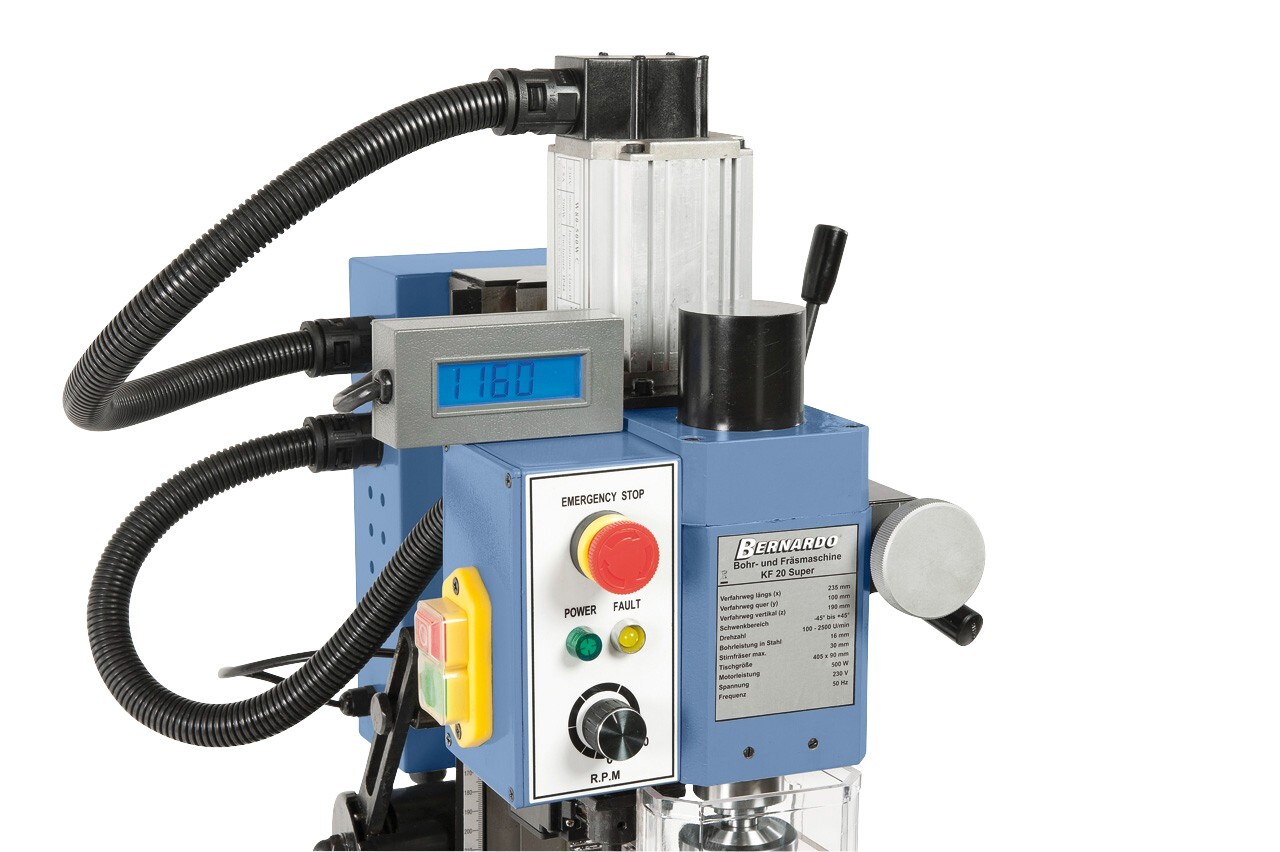 La fresatrice KF 20 Super di Bernardo è una soluzione compatta e potente, progettata per soddisfare le esigenze di modellisti, artigiani e professionisti del fai-da-te. Dotata di un motore a corrente continua brushless, questa macchina offre un'elevata silenziosità e un funzionamento uniforme del mandrino, anche alle velocità più basse. La robustezza e la precisione di questa fresatrice la rendono ideale per lavori di foratura, fresatura e smussatura, garantendo risultati impeccabili su pezzi di piccole e medie dimensioni.