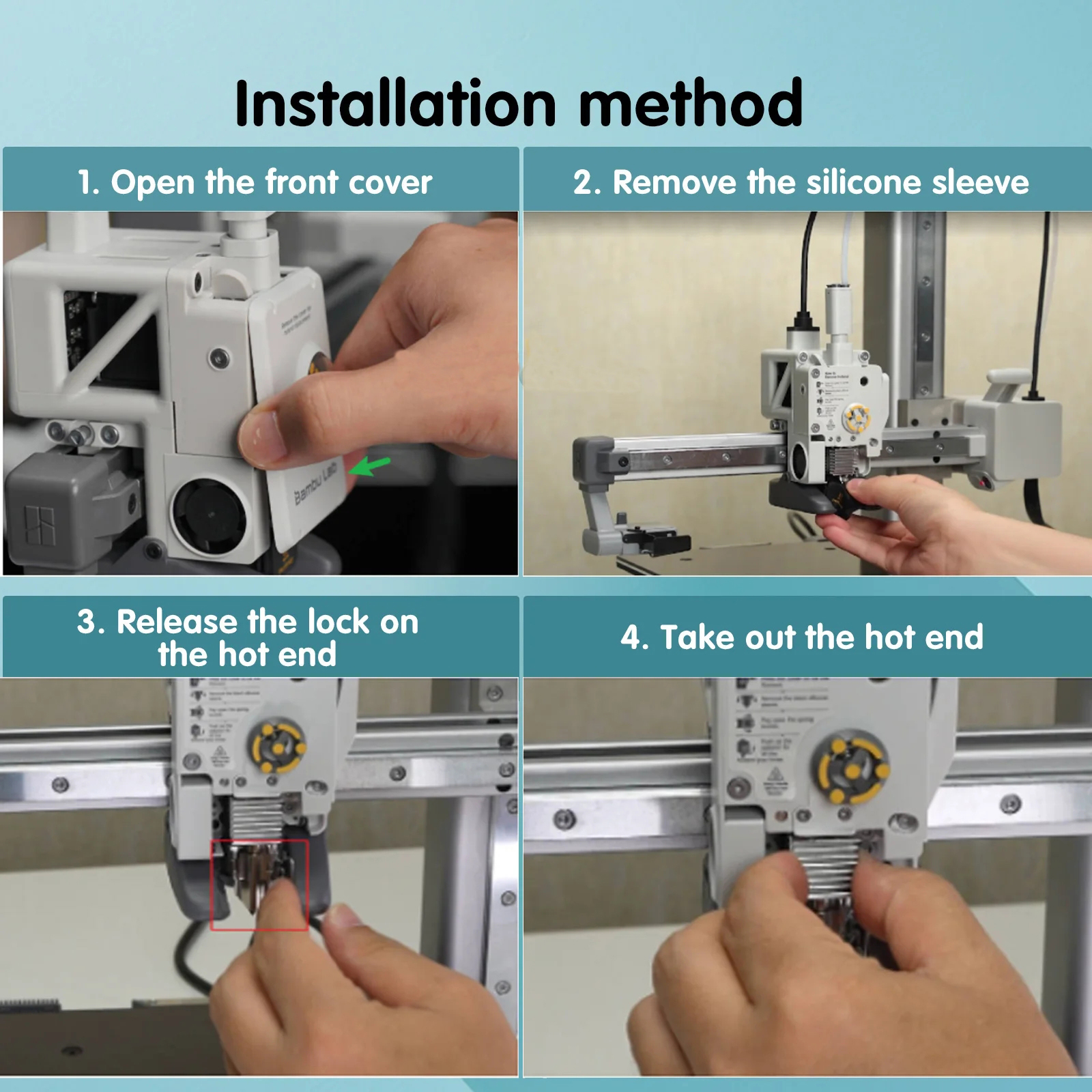 2.The magnetic block on the A1mini hot end heating component can quickly and accurately fix the nozzle to the installation position, making disassembly and installation of the nozzle easy and convenient* Before replacement, please ensure that the hot end has cooled down and avoid touching the heating block at the bottom of the hot end to prevent burns.Specification: