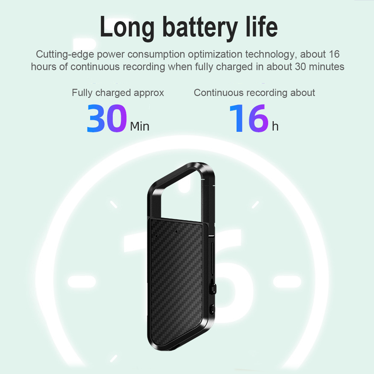 Long battery life, up to 16 hours of continuous recording when fully charged;