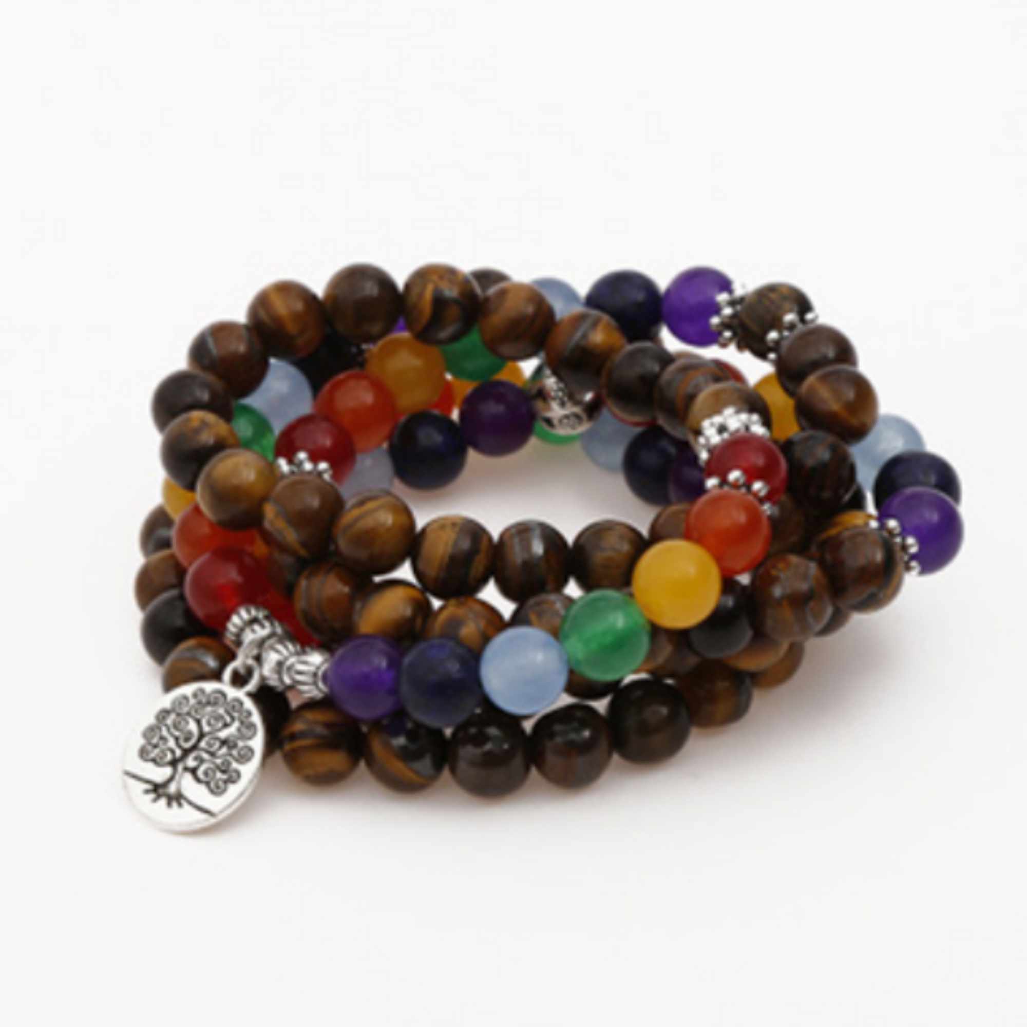 6mm 7 Chakras Tigers Eye Bracelet 108 Beads Life Tree Bless Classic Party Casual