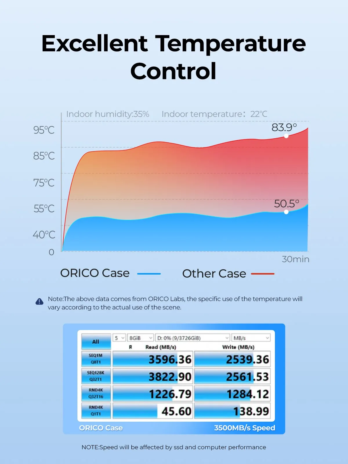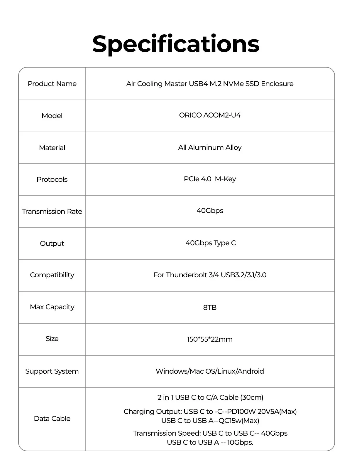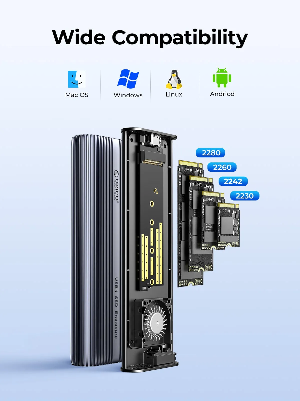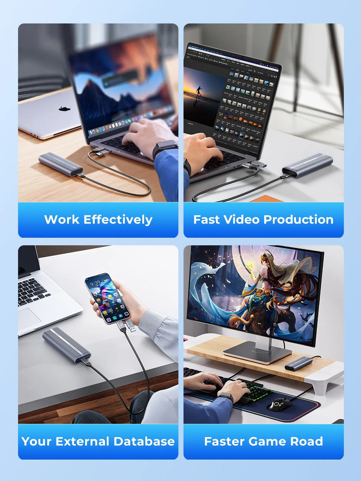 With USB4 technology,this SSD case provides lightning-fast data transfer speeds of up to40Gbps.making file transfers and backups quick and efficient.