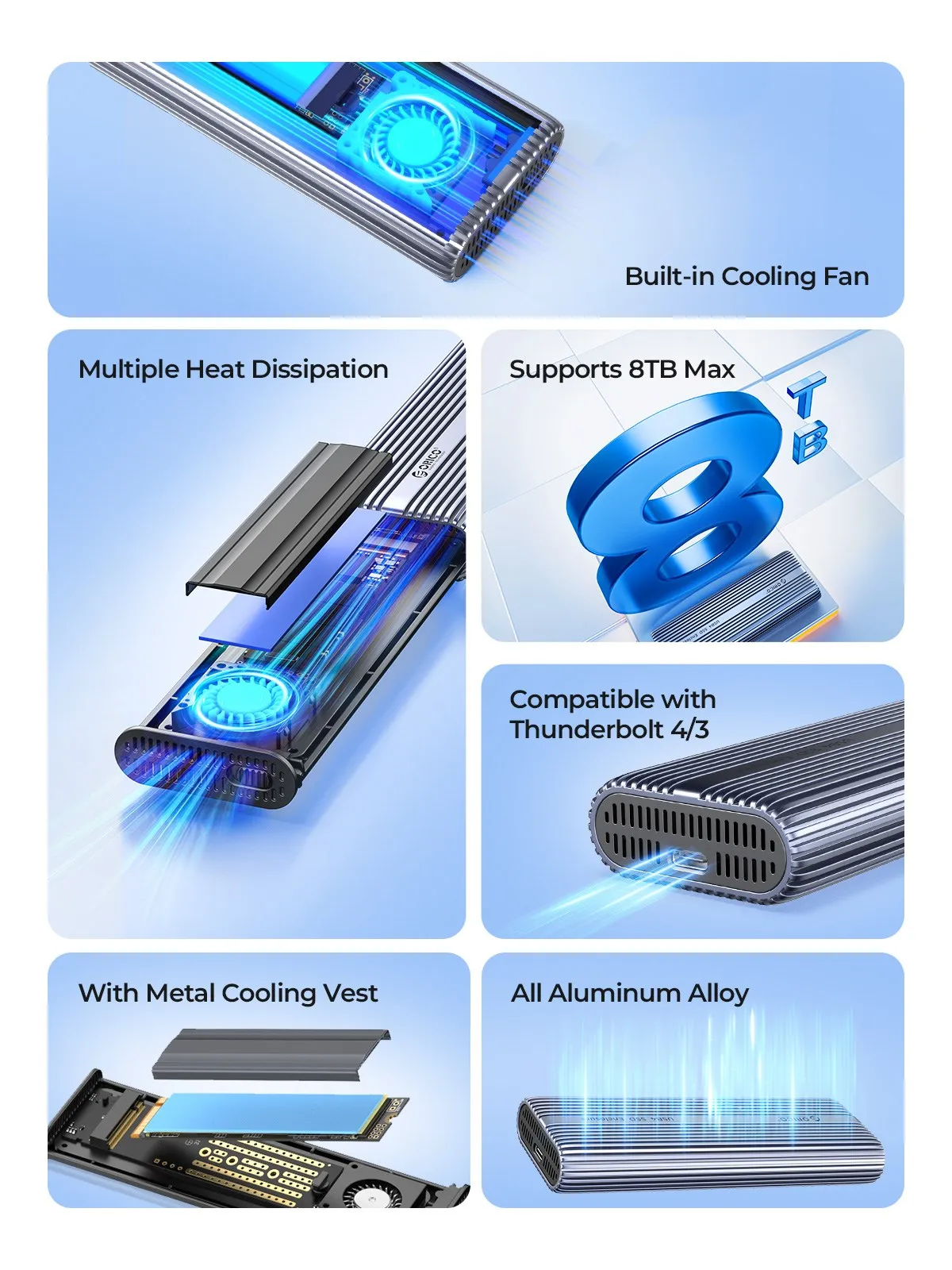Tool-free,easy to assemble.plug and play.compatible with Thunderbolt 4/3.