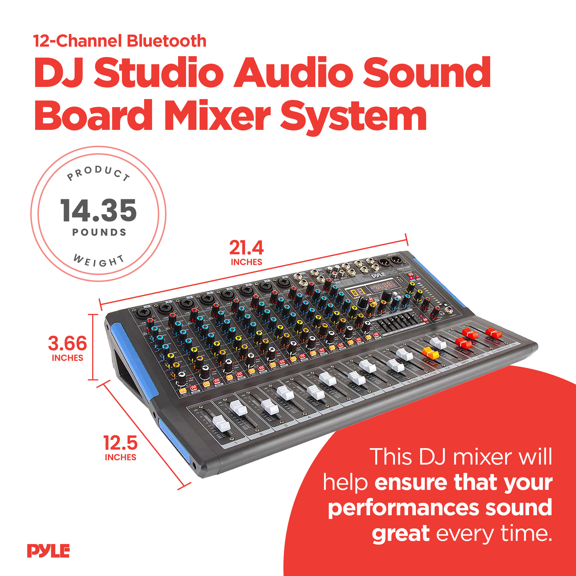Enjoy a value-packed mixing solution with the Pyle 12-Channel Bluetooth DJ Mixer.