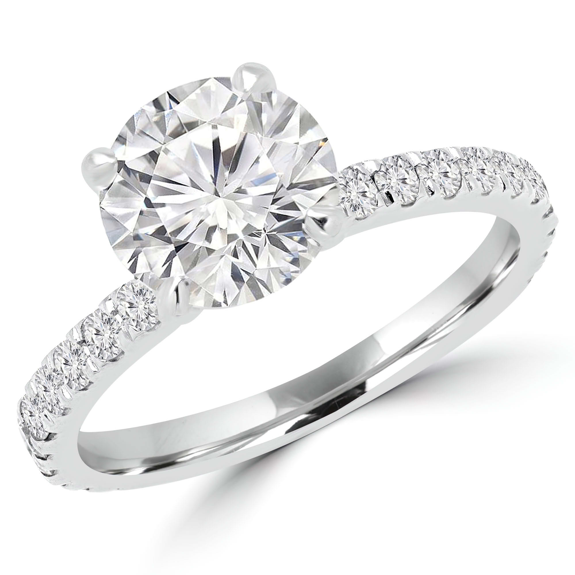 0.93 CT Round SI2 G Diamond Pave Engagement Ring 10K White Gold