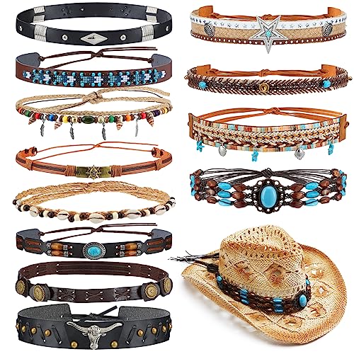 12 Pcs Cowboy Hat Band Replacement Handmade Ethnic Western Hat Belts with Novel