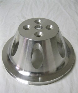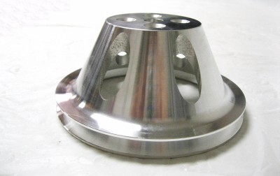 This is a Brand New Aluminum Upper Water Pump pulley. This is a Single groove pulley designed for your Small Block Chevy 283 - 350 with a Short Water Pump. This has a 6.6" Diameter and 1.75" Mounting bolt Circle. Constructed of thick gauge aluminum and with a high quality Satin Aluminum finish, this kit would be great addition to your project.