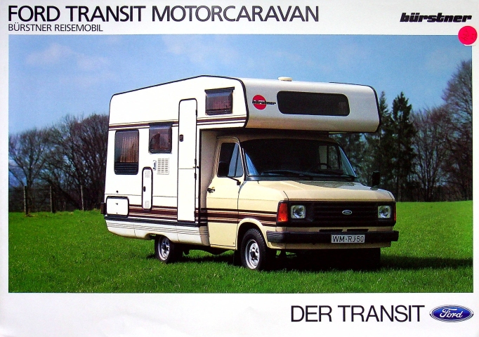 Wir bieten Ihnen ein 2 Seiten starkes, deutschsprachiges Ford Transit Bürstner Prospekt Prospekt aus dem Jahr 1985 an.