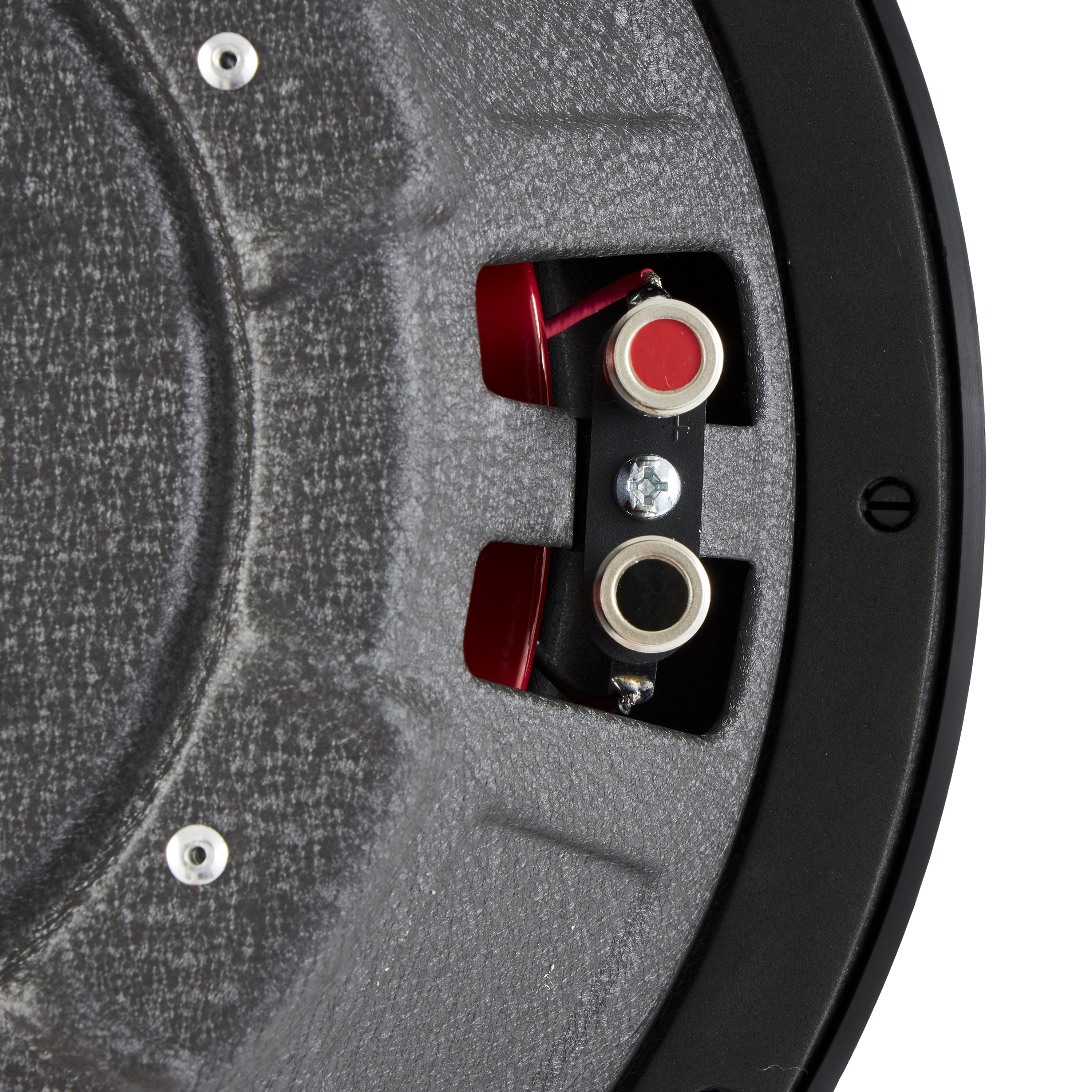 With a thermal formed poly cone, vented aluminum former, and butyl surround, the MB Quart Discus 400 Watt 12-Inch shallow mount subwoofer has less than 3.1 inches of mounting depth. Constructed with a heavy-gauge textured powder coat for increased durability, you can be sure this speaker system is ideal for use in cars and trucks. The frame or venting features a stamp-cast deep-drawn steel basket. The UV rubber surround resists sun fading and remains flexible, while the nickel-plated push and insert resist corrosion, ensuring ease of installation. Ideal for any vehicle or other applications that require a small mounting depth, the MB Quart is known for producing top-of-the-line subwoofers, speakers, and amps.