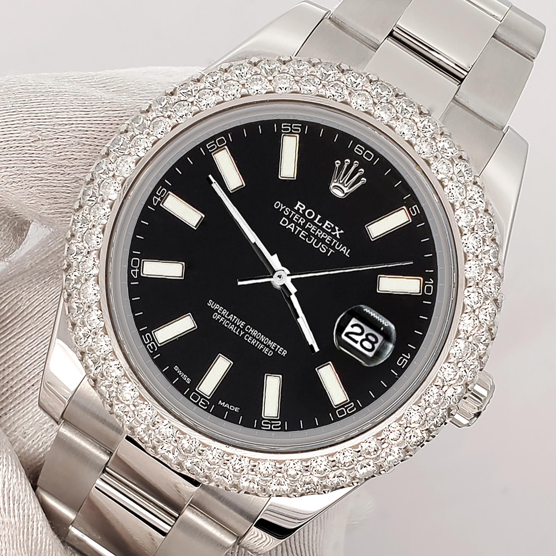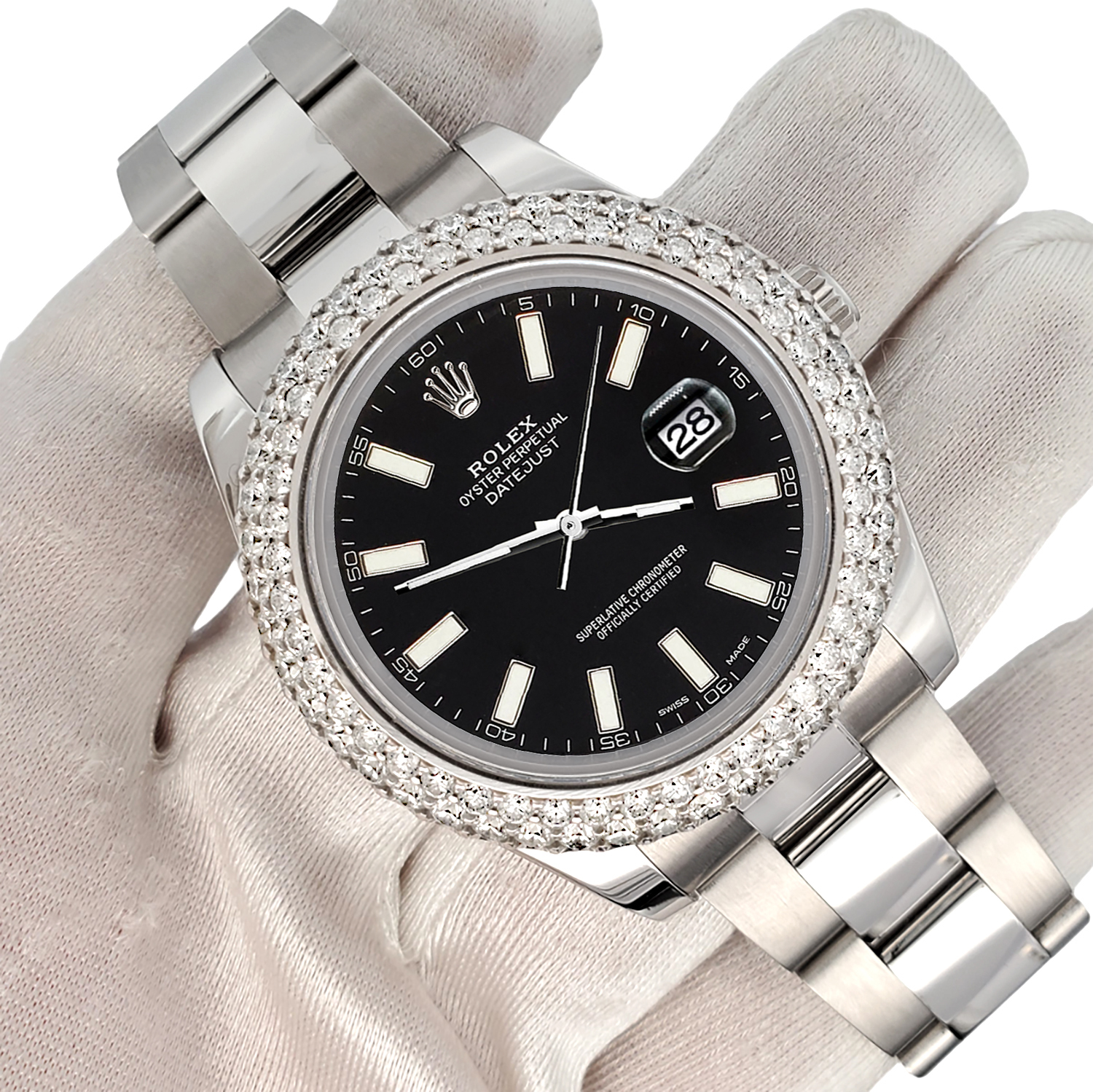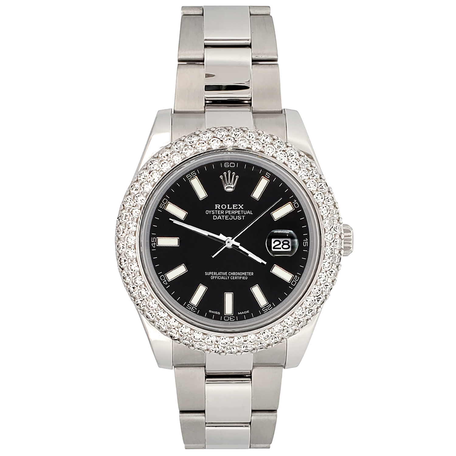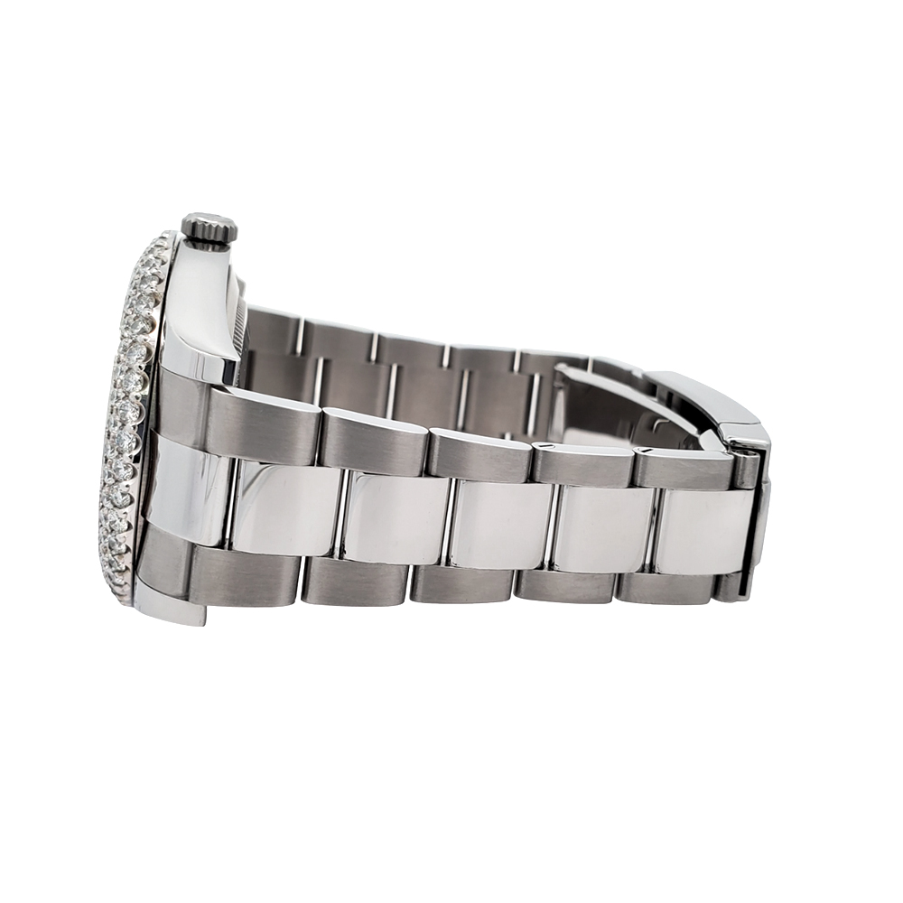 Rolex Datejust II 41mm Stainless Steel Watch, Ref #116300. Custom 6.25ct dome diamond bezel (diamonds are not set by Rolex).