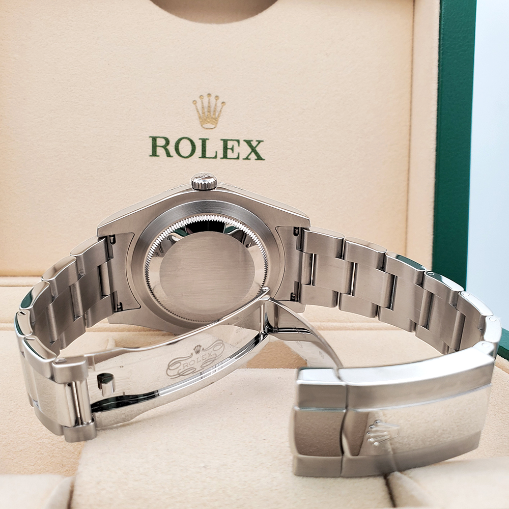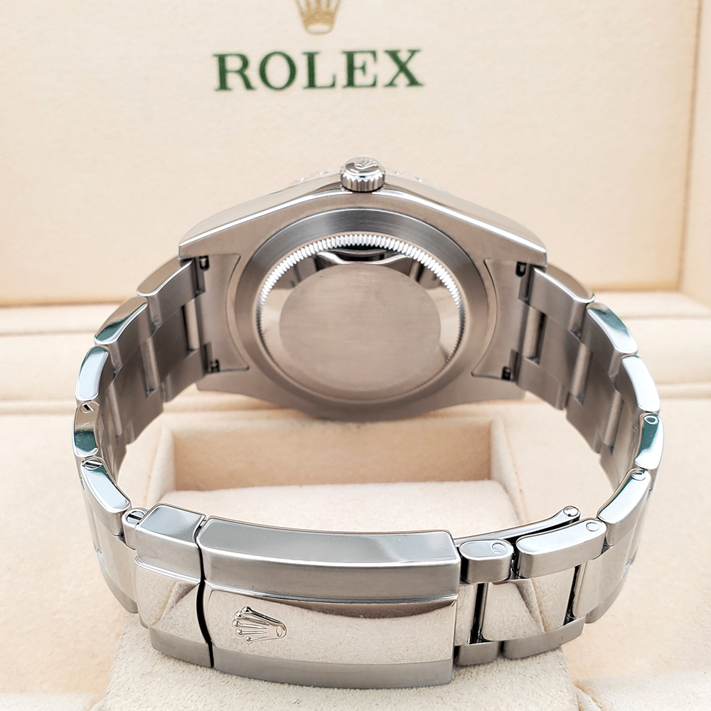 Excellent, pristine condition, works flawlessly, comes with Rolex box, Rolex papers, certificate of appraisal, ElegantSwiss Three Year Warranty, and LIFETIME Individual Diamond Replacement Warranty. The watch is running strong and keeping accurate time, having been timed to precision on Witschi Expert Timing Machine.