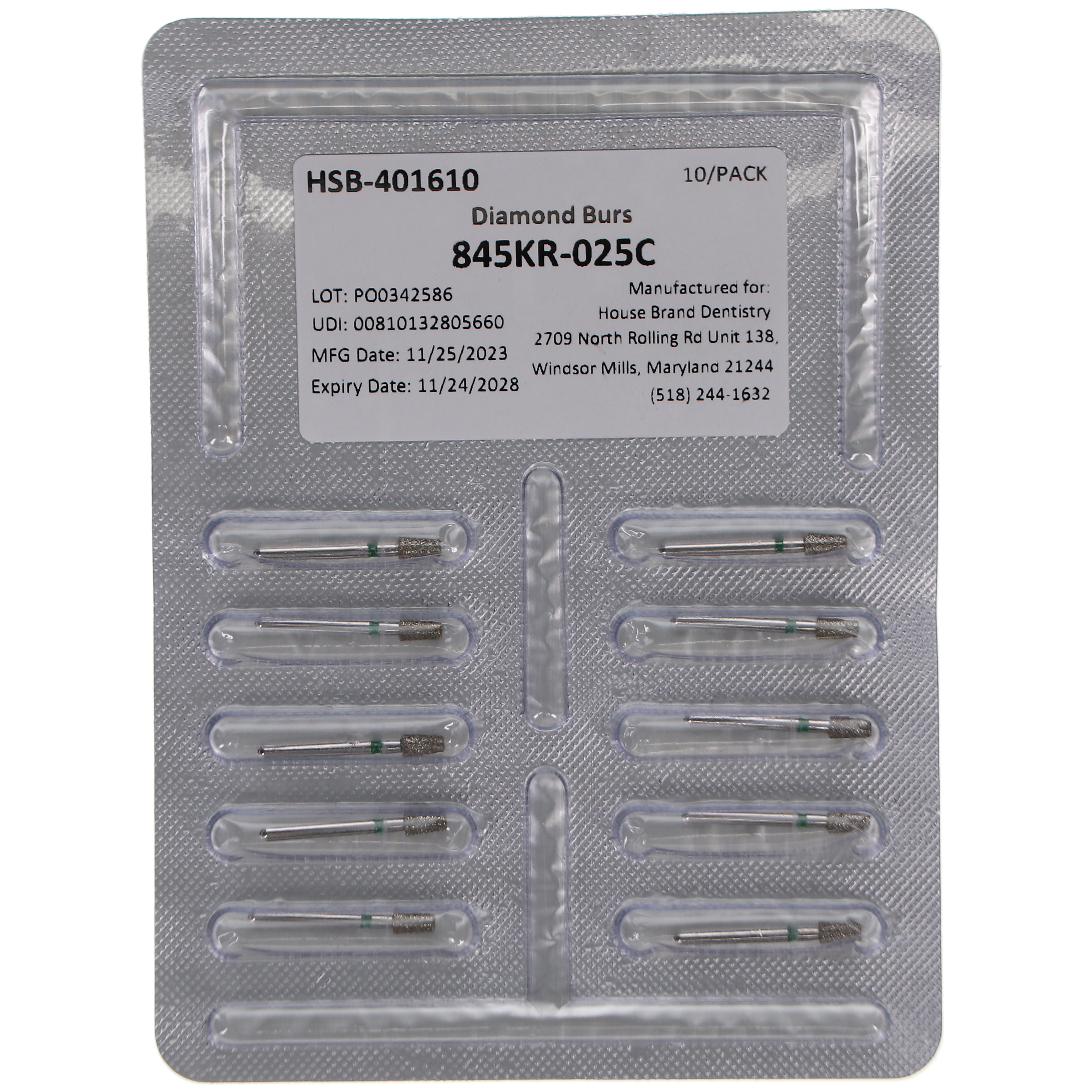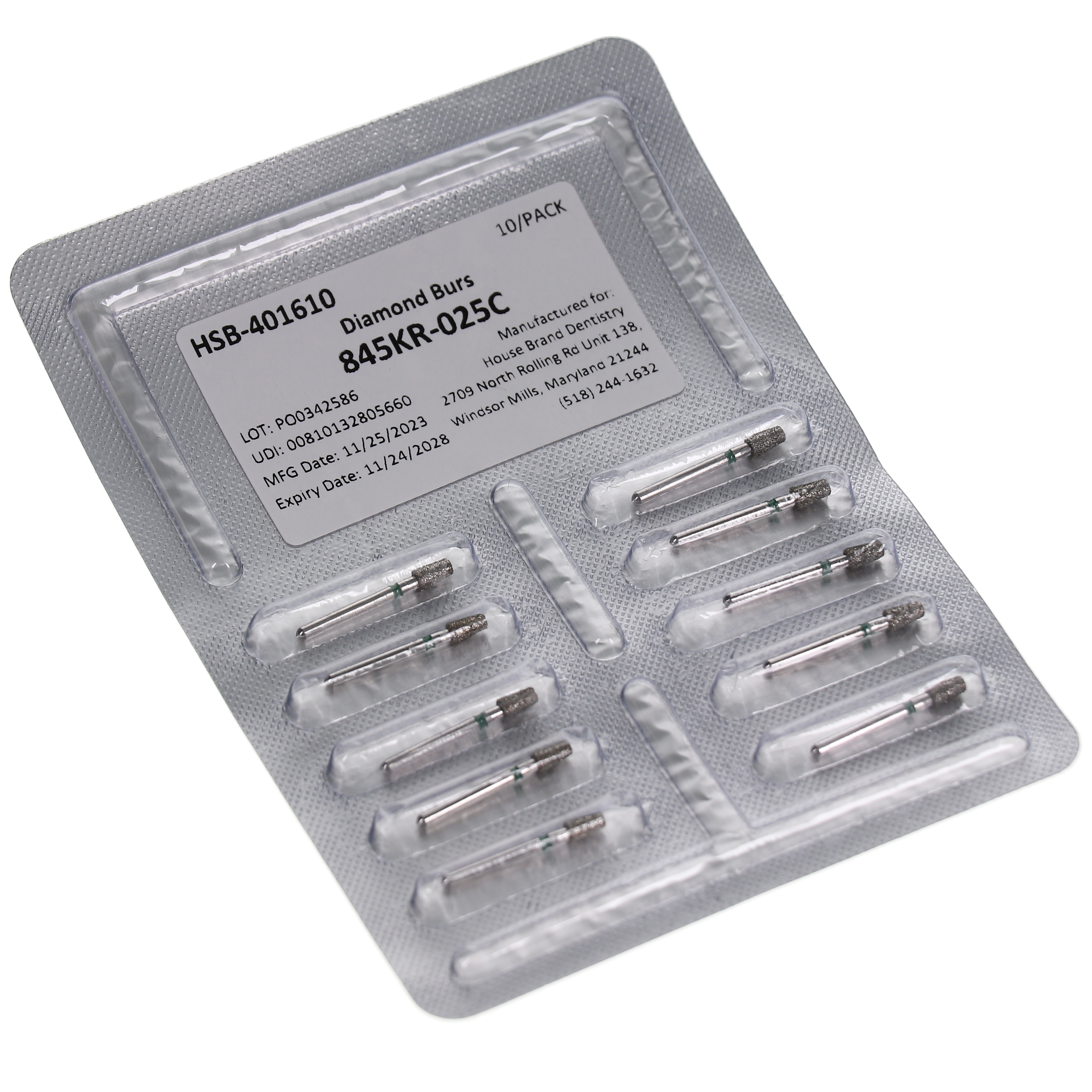 FG #845KR.025 Coarse Grit, Modified Flat End Taper, Diamond Burs. Package of 10 Burs.