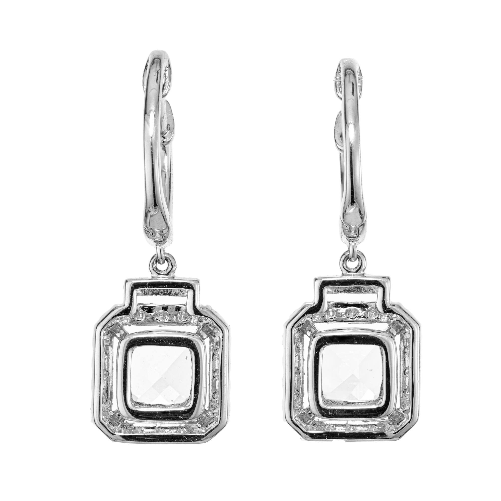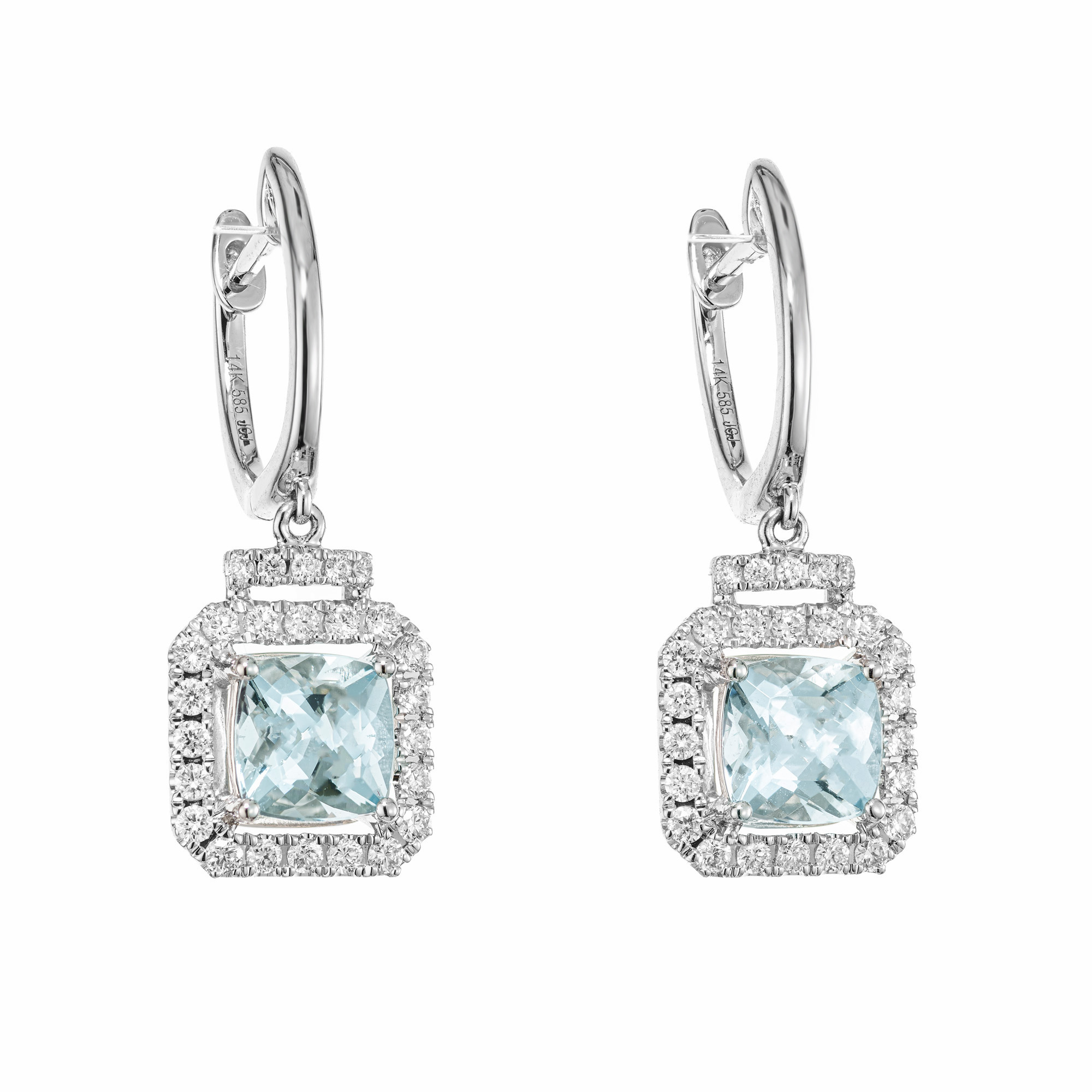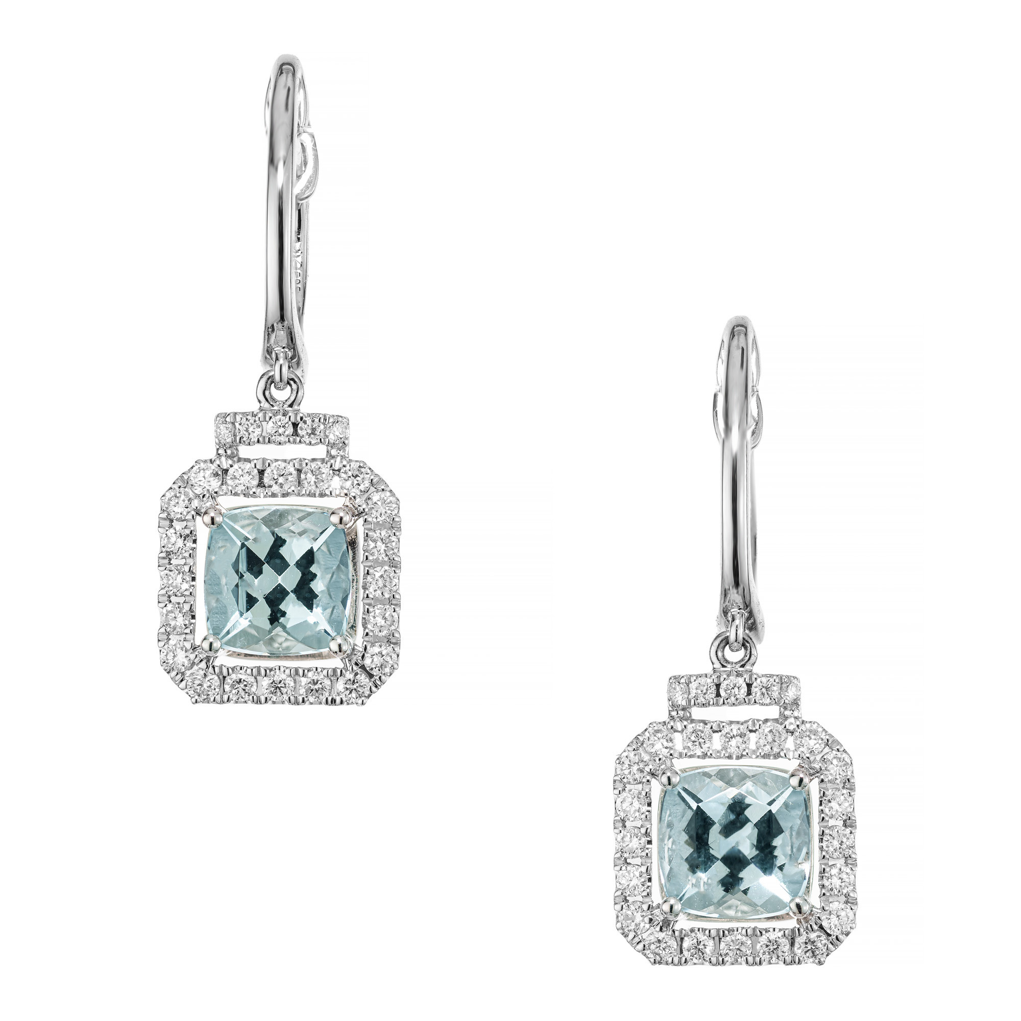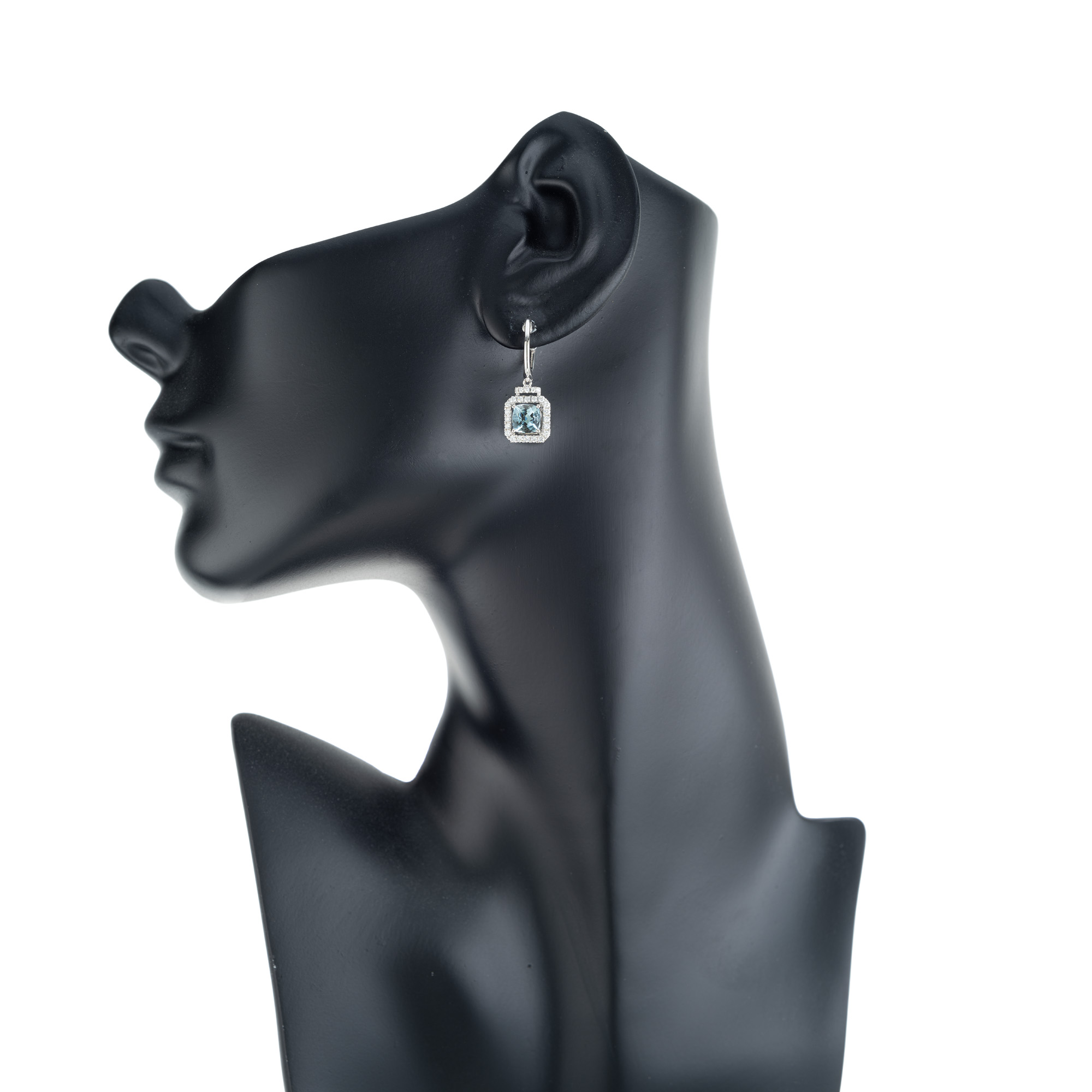 Aqua diamond earrings in 14k white gold.